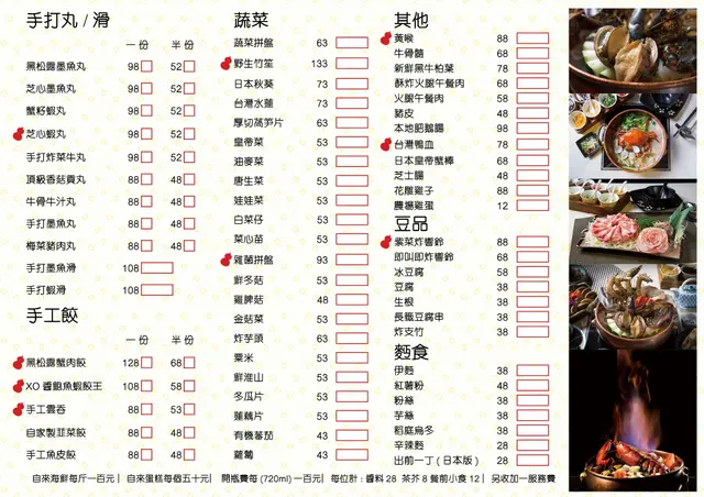 銅鑼灣依間「胡爐」主打足料火鍋湯底,以及各式各樣嘅手打丸類或餃子,所以今次都Order咗唔少佢哋出名嘅食物試下。*此餐廳收取加一服務費。胡椒豬肚花膠雞鍋(單點$288),花膠口感爽滑,豬肚口感爽口,略嫌份量比較少,雞件肉質嫩滑,雞味濃厚,湯底飲落充滿黑胡椒、白胡椒味道,味道辛辣,湯料包括有鹹菜、芹菜、枝竹。丸類拼盤(單點$128),芝心墨魚丸,內有大量墨魚粒,食落有鮮味;芝心蝦丸,內有芝士,流心效果突出,味道鹹香;黑松露墨魚丸,口感彈牙;梅菜豬肉丸,採用甜梅菜製作,類似梅菜蒸肉餅味道。餃類拼盤(單點$128),黑松露蟹肉餃,黑松露味道濃郁,內有雜菌,蟹肉味道鮮甜,略嫌肉質比較細碎;自家製韮菜餃,韮菜食落好香口;XO醬鮑魚蝦餃王,鮑魚味道香辣,XO醬內有蝦米、瑤柱,食落好惹味,內有鮮蝦;手打雲吞,鮮蝦、豬肉比例適中,鮮蝦食落好新鮮。醬料(兩人$56),包括有豉油、芫荽、香蔥、蒜蓉、炸蒜、麻醬、指天椒、沙茶醬、XO醬。…查看更多
