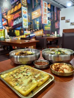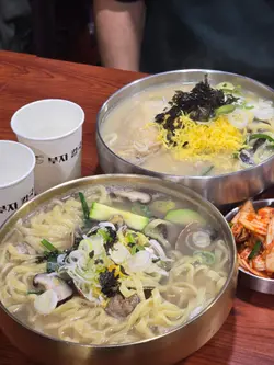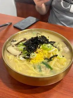 星期五晚上見到全店滿座,相信一定唔錯🤩同好友入去試試,估唔到咁有驚喜😍✨牛骨湯刀削麵✨一上枱,就俾濃郁乳白色嘅牛骨香迷倒,香氣十足😍湯底唔似一般韓式牛骨湯咁油膩,反而夾雜着陣陣胡椒香氣,清爽得嚟帶住層次分明嘅鹹香,非常岀色👍🏻👍🏻刀削麵彈牙煙韌,每條麵條都係手工削出嘅粗條狀,咬落去有嚼勁,又掛湯,真係好正❤️❤️搭配滑溜嘅蛋絲、紫菜及香菇一齊食,更加增添清甜的風味!牛展肉質軟稔,份量不少,令人回味無窮。✨雞髀刀削麵✨雞髀刀削麵同樣用牛骨湯底,但加咗幾塊薯仔令湯底口感更綿密豐厚。薯仔大塊但燉得軟稔,口感軟爛❤️大大隻雞脾非常吸睛,啖啖肉,肉質滑嫩好食,搭配彈力十足的刀削麵,每啖都好滿足。而且湯底帶嘅微辣感,唔會蓋過雞肉鮮味,反而更加提味,令人忍唔住一口接一口咁飲晒碗湯。✨海鮮韭菜煎餅✨煎餅表面香脆得嚟唔失彈性,中間餡料飽滿,煎餅邊緣煎到微焦,油份帶出香味但唔膩口。配埋帶點酸甜嘅蘸醬,令整體滋味更上一層樓。手工刀削麵份量足又夠煙韌彈牙,價錢合理,非常抵食,難怪有不少人排隊。想睇更多介紹,馬上Follow我啦😁。#自家製韓國刀削麵 #香港第一間韓式刀削麵 #牛骨湯刀削麵 #雞髀刀削麵 #韓式刀削麵 #元朗美食 #元朗 #元朗好去處 #big_big_foodie #big_big_foodie食勻元朗 #big_big_foodie食勻香港…查看更多