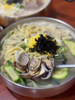 星期五晚上見到全店滿座,相信一定唔錯🤩同好友入去試試,估唔到咁有驚喜😍✨牛骨湯刀削麵✨一上枱,就俾濃郁乳白色嘅牛骨香迷倒,香氣十足😍湯底唔似一般韓式牛骨湯咁油膩,反而夾雜着陣陣胡椒香氣,清爽得嚟帶住層次分明嘅鹹香,非常岀色👍🏻👍🏻刀削麵彈牙煙韌,每條麵條都係手工削出嘅粗條狀,咬落去有嚼勁,又掛湯,真係好正❤️❤️搭配滑溜嘅蛋絲、紫菜及香菇一齊食,更加增添清甜的風味!牛展肉質軟稔,份量不少,令人回味無窮。✨雞髀刀削麵✨雞髀刀削麵同樣用牛骨湯底,但加咗幾塊薯仔令湯底口感更綿密豐厚。薯仔大塊但燉得軟稔,口感軟爛❤️大大隻雞脾非常吸睛,啖啖肉,肉質滑嫩好食,搭配彈力十足的刀削麵,每啖都好滿足。而且湯底帶嘅微辣感,唔會蓋過雞肉鮮味,反而更加提味,令人忍唔住一口接一口咁飲晒碗湯。✨海鮮韭菜煎餅✨煎餅表面香脆得嚟唔失彈性,中間餡料飽滿,煎餅邊緣煎到微焦,油份帶出香味但唔膩口。配埋帶點酸甜嘅蘸醬,令整體滋味更上一層樓。手工刀削麵份量足又夠煙韌彈牙,價錢合理,非常抵食,難怪有不少人排隊。想睇更多介紹,馬上Follow我啦😁。#自家製韓國刀削麵 #香港第一間韓式刀削麵 #牛骨湯刀削麵 #雞髀刀削麵 #韓式刀削麵 #元朗美食 #元朗 #元朗好去處 #big_big_foodie #big_big_foodie食勻元朗 #big_big_foodie食勻香港…查看更多