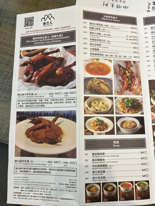✨潮汕滷水炸乳鴿色澤金黃誘人、外皮酥脆、內裡肉質鮮嫩、滷水香氣濃郁、口感層次豐富、令人垂涎、完美呈現潮州風味😍✨孜然高原羊排新鮮羊肉、精心腌制、搭配香濃獨特孜然和特製香料、外焦內嫩、肉汁豐富、每一口都散發著高原的自然氣息、讓人欲罷不能、享受獨特的風味👏🏻✨椒鹽大鮑魚(4隻)掌心般大鮑魚、肉質鮮嫩、彈牙有嚼口、灑上香辣椒鹽、外脆內軟、風味獨特、令人回味無窮!📣📣大優惠📣📣星期一至星期五、點心半價🤩🤩自己人荃灣楊屋道1號荃新天地UG樓UG43&81號舖港鐵荃灣西站D出口、步行約7分鐘…查看更多