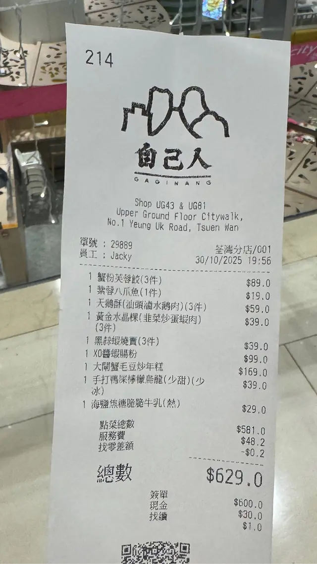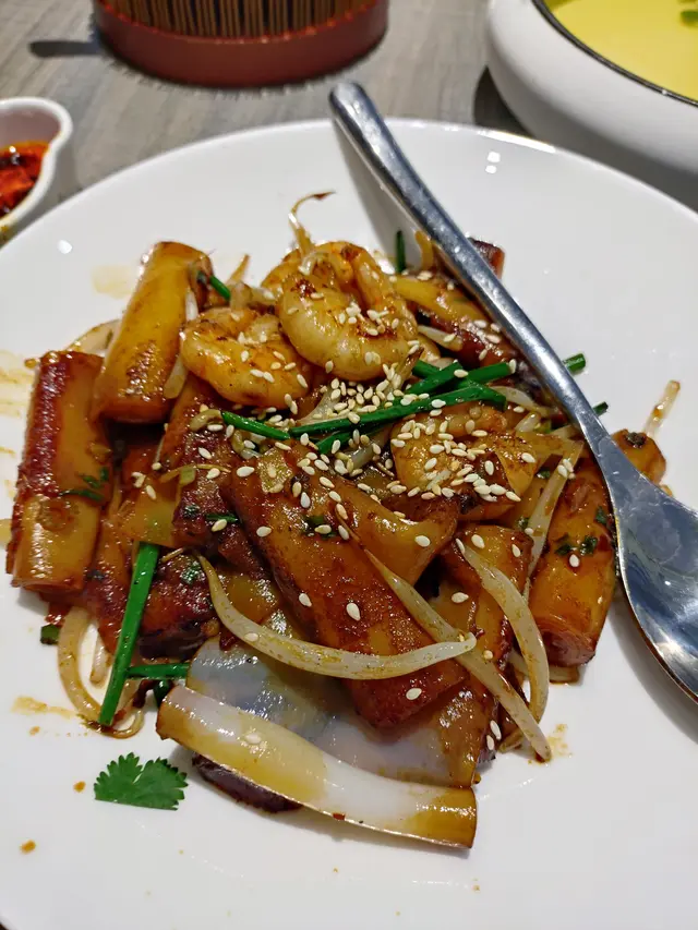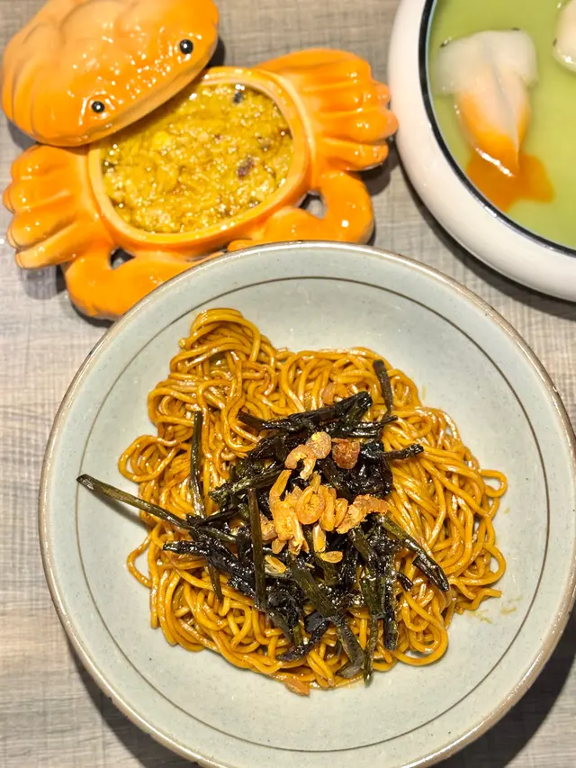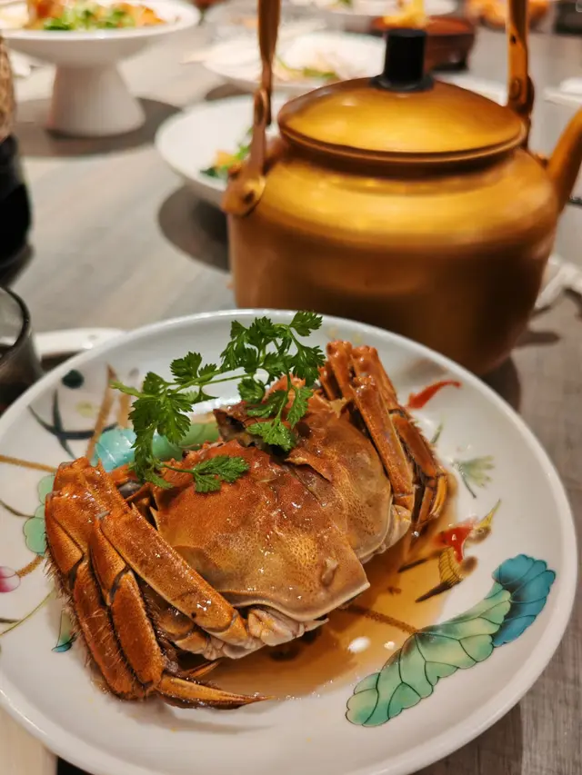 同朋友一齊嚟咗呢間喺荃灣商場裏邊嘅潮州菜菜館食晚餐🤣呢度可以講係屬於新派潮州菜,點解呢?因為呢度嘅潮州菜有啲新意同埋都幾注重賣相即係賣相靚靚嗰隻🤩$99「滷水鵝件」:鵝件有不同部位,大部份鵝件都起咗骨啖啖肉食得好方便,少部份就連住啲骨好似鵝掌翼部份咁就可以吮骨,全部都滷得好入味🤣$159「椒鹽大鮑魚」:鮑魚一共4隻,隻隻都大大隻,肉質結實又爽滑,估計係撲咗薄薄嘅乾粉輕輕炸過,再加椒鹽,香口得嚟非常好食,超正🤣$39「手打鴨屎檸檬烏龍」:揀咗《微甜、走冰》,有淡淡嘅檸檬香味🤣$149「蔥香角螺(高筍)」:角螺切成薄片夠爽脆,爽脆係因為非常新鮮🤣;仲有大量都係好爽脆嘅萵筍絲可以食🤣$89「豆醬象牙茄子」:青色嘅茄子好新鮮,加咗豆醬同埋蒜蓉去煮,好味道🤣$149「酸菜龍躉」:用一個大碗裝住,裏邊有好厚肉兼鮮甜嘅龍躉,仲有好多其他配菜包括 紅椒乾、薯粉、花椒、芫荽、芹菜、香蔥 等,材料都相當豐富🤣$198「蟹粉拌麵」:蟹粉放響一個蟹型嘅小兜裏邊而麵就放喺個碗裏邊,分開上,賣相幾好玩🤩;蟹粉份量都幾多,味道濃郁🤣;麵本身就好似係蔥油拌麵咁款,有好香嘅醬油同埋油炸香蔥味,再撈埋蟹粉,簡單講:好食🤣$36「黃皮茉莉茶冷萃咖啡」:冷萃咖啡配埋黃皮茉莉茶,出奇地夾,幾香幾好飲🤣食得飽飽又滿足嘅一餐🤣…查看更多