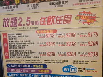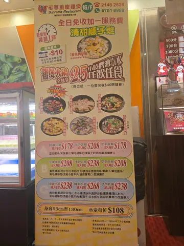 友人話好耐無食過鷄煲,放工後就同佢上黎呢度。三款套餐都唔過每位三百,全日免收加一,咁就叫C餐,最多款式。多個凍櫃有齊特色罐裝飲品,連啤酒都有。入坐後即刻去拎罐凍飲爽爽先。根據佢教你嘅食鷄三部曲,首先食咗個至尊重慶雞煲,開細火滾返熱就食得,一路滾起,個鷄煲香味就開始散出黎。鷄件相當入味,個鷄煲醬汁夠晒惹味,辣度自選小辣,有大量香甜洋蔥及芹菜,就咁配個白飯都已經可以當一餐。跟住趁有呢個惹味鷄煲醬汁,就叫咗一系列掛汁尤物,有牛栢葉,水魷,豬皮,鵝腸,炸支竹及鴨血等。與醬汁一齊煮,好似食緊街邊小食檔D一串串咁,好食又過癮。食完就可以最後一部曲,掃二維碼落火鍋配料單。自製肉類拼盤,有澳洲牛肩肉眼,特上牛小排,羊肉片及黑豚梅花片。加湯就可以開始打邊爐,先烚片澳洲牛肩肉眼,肉味幾重,肉質幾嫩,烚幾秒就食得。之後就到特上牛小排,脂肪位多D,多一份油香及滑溜。又自製咗個海鮮拼盤,包括有蝦,沙白,魷魚仔,脆骨腩,青口及廣島蠔。歡喜隻蝦幾彈牙及有蝦味。丸類當然係火鍋中不能缺少,叫咗蒜味花枝丸及爆汁牛丸,仲有芝心丸。蔬菜已放好一碗碗於凍櫃,可出去自取。記住留肚食甜品,有啫喱,奶凍,桂花糕等仲有多款特色口味嘅雪糕杯當然唔客氣可以一次過試幾款味道。任飲任食2.5小時,就算一路食一路傾計時間都相當足夠。…查看更多