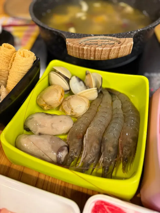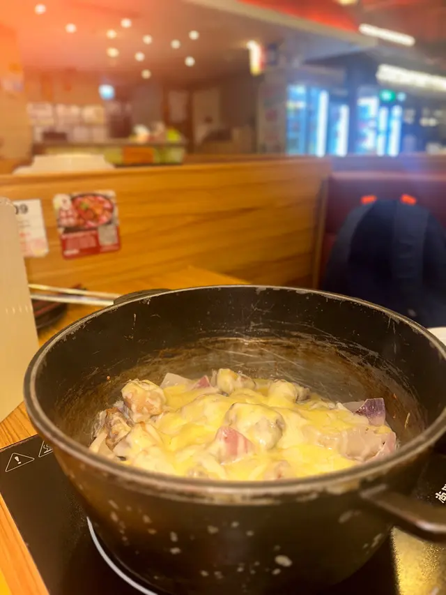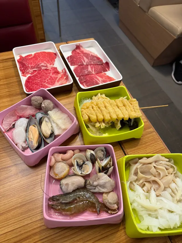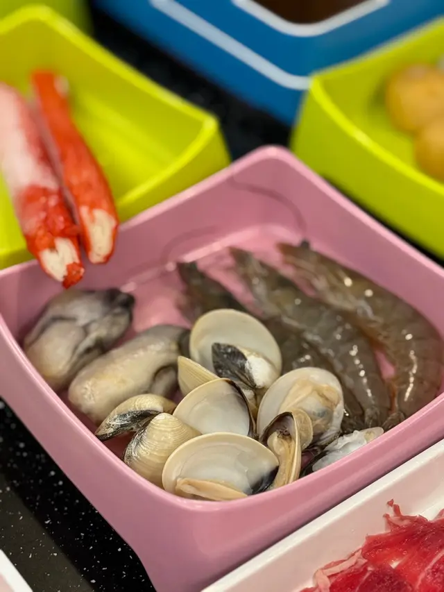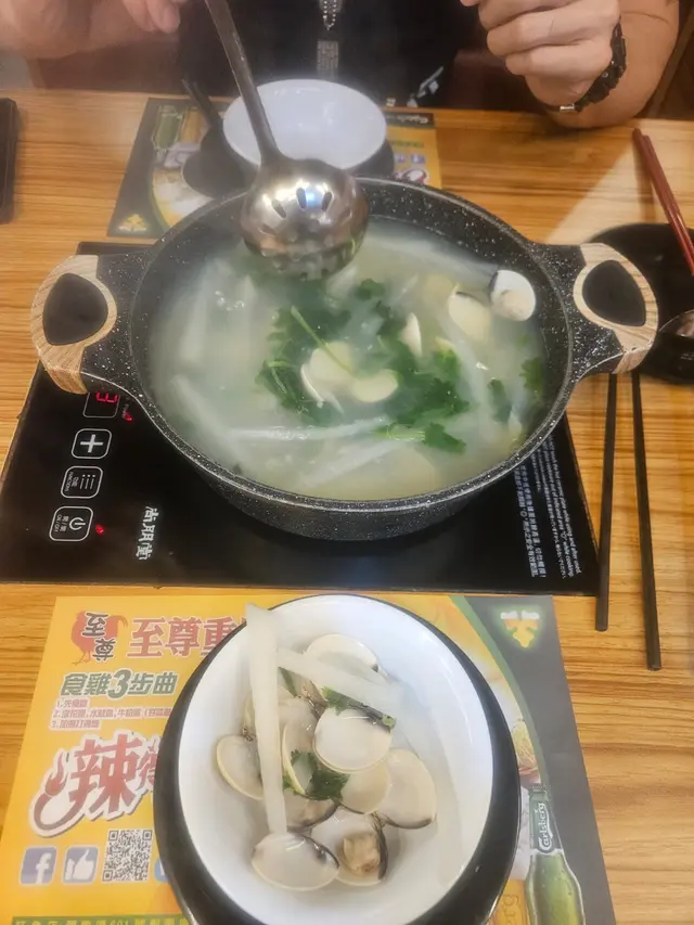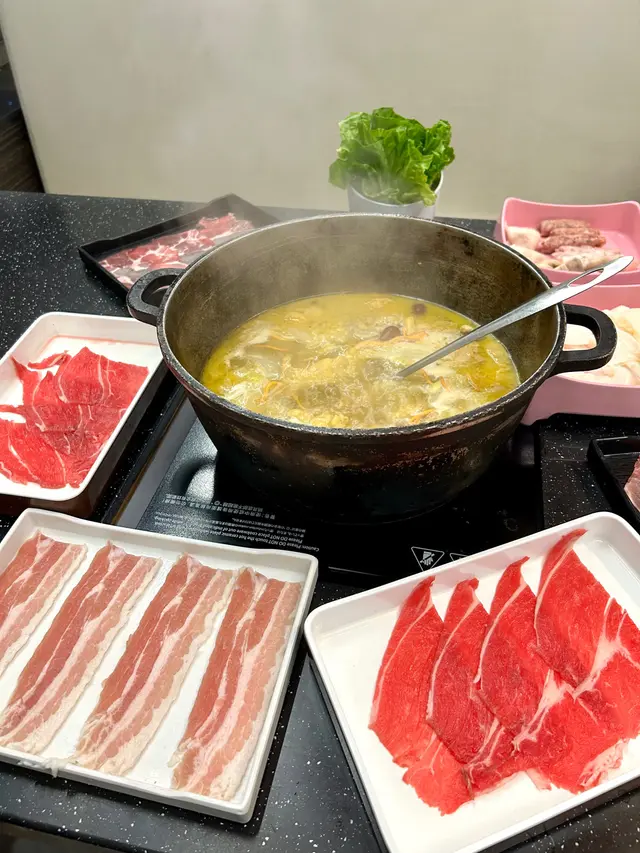 友人話好耐無食過鷄煲,放工後就同佢上黎呢度。三款套餐都唔過每位三百,全日免收加一,咁就叫C餐,最多款式。多個凍櫃有齊特色罐裝飲品,連啤酒都有。入坐後即刻去拎罐凍飲爽爽先。根據佢教你嘅食鷄三部曲,首先食咗個至尊重慶雞煲,開細火滾返熱就食得,一路滾起,個鷄煲香味就開始散出黎。鷄件相當入味,個鷄煲醬汁夠晒惹味,辣度自選小辣,有大量香甜洋蔥及芹菜,就咁配個白飯都已經可以當一餐。跟住趁有呢個惹味鷄煲醬汁,就叫咗一系列掛汁尤物,有牛栢葉,水魷,豬皮,鵝腸,炸支竹及鴨血等。與醬汁一齊煮,好似食緊街邊小食檔D一串串咁,好食又過癮。食完就可以最後一部曲,掃二維碼落火鍋配料單。自製肉類拼盤,有澳洲牛肩肉眼,特上牛小排,羊肉片及黑豚梅花片。加湯就可以開始打邊爐,先烚片澳洲牛肩肉眼,肉味幾重,肉質幾嫩,烚幾秒就食得。之後就到特上牛小排,脂肪位多D,多一份油香及滑溜。又自製咗個海鮮拼盤,包括有蝦,沙白,魷魚仔,脆骨腩,青口及廣島蠔。歡喜隻蝦幾彈牙及有蝦味。丸類當然係火鍋中不能缺少,叫咗蒜味花枝丸及爆汁牛丸,仲有芝心丸。蔬菜已放好一碗碗於凍櫃,可出去自取。記住留肚食甜品,有啫喱,奶凍,桂花糕等仲有多款特色口味嘅雪糕杯當然唔客氣可以一次過試幾款味道。任飲任食2.5小時,就算一路食一路傾計時間都相當足夠。…查看更多