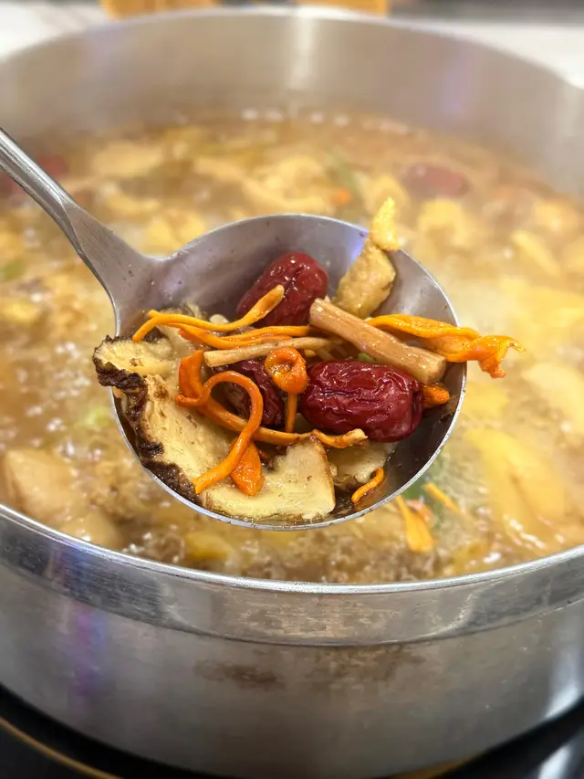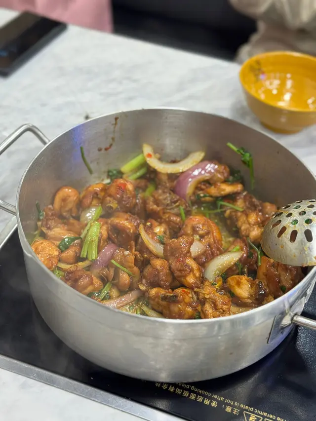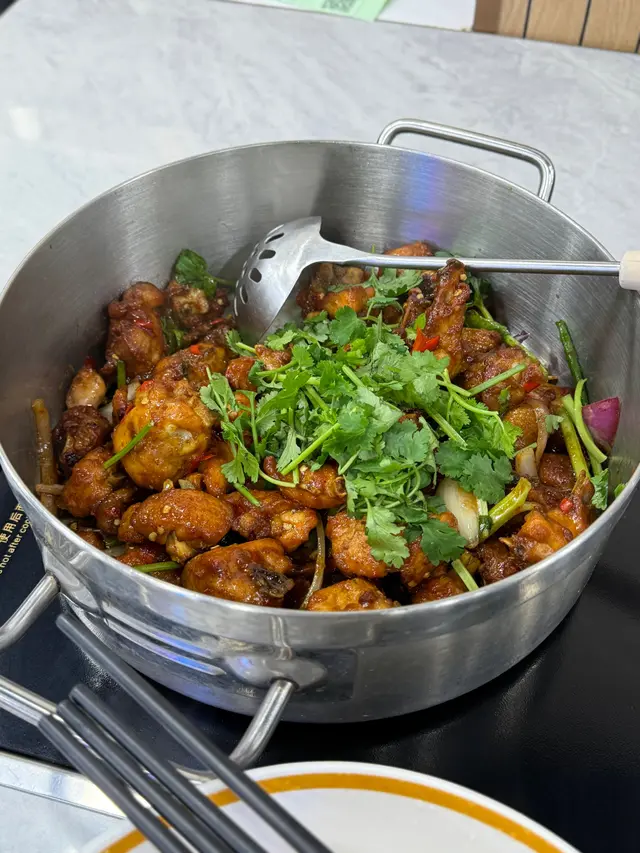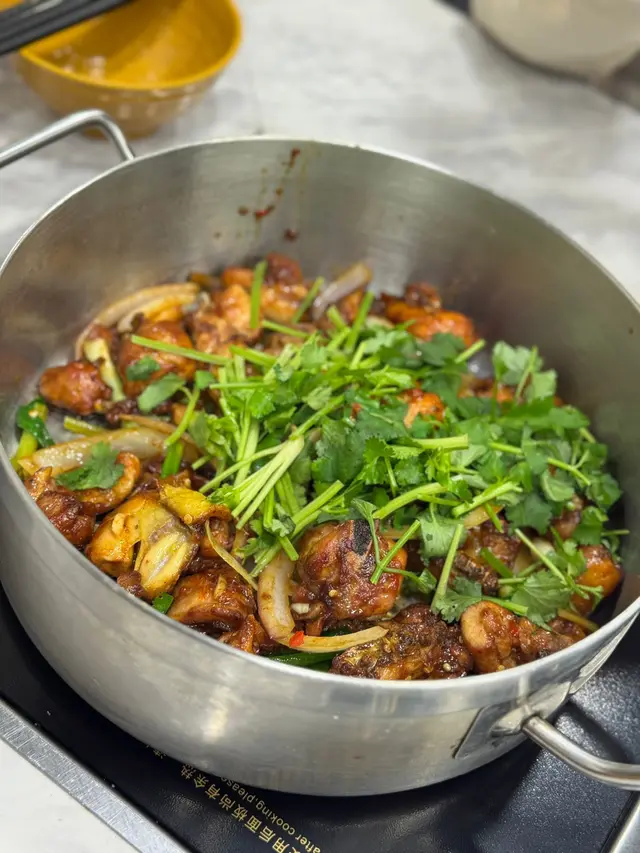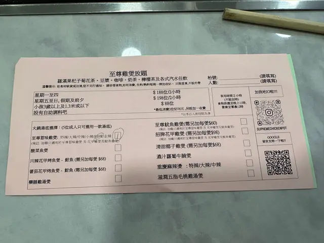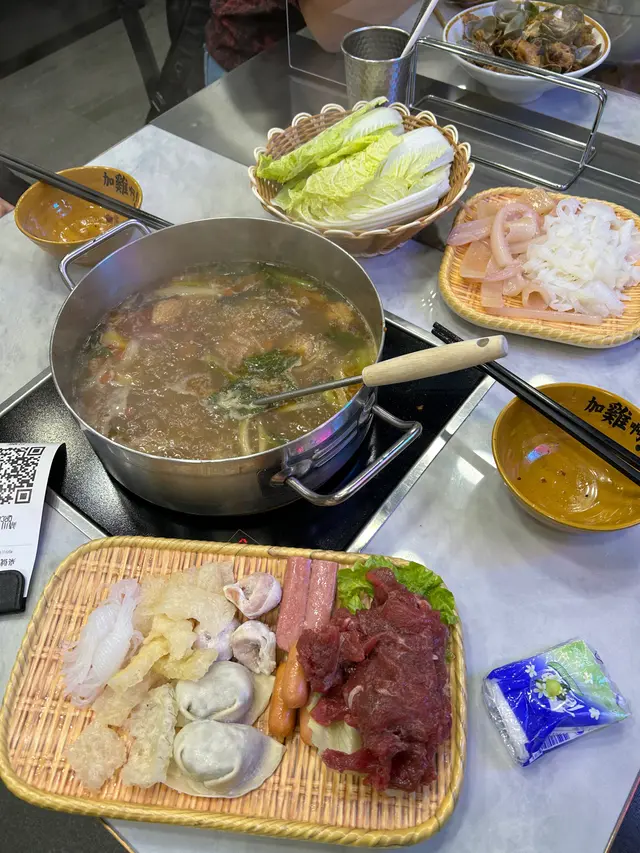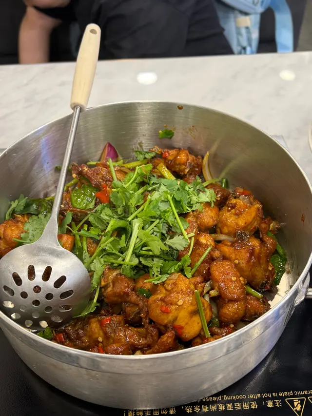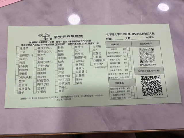 餐廳主打任飲任食雞煲打邊爐🥘平日每位$188性價比極高💯但唔包括收費小食及啤酒🍺至尊惹味雞煲🐔🍲今次主要係食惹味雞煲,上枱後店員會幫手將已醃製好的雞件同芫茜、芹菜、洋蔥🧅及蔥等香料炒至入味,雞件份量十足👍,叫左小辣🌶️,辣味程度可跟自己口味決定,每件雞件香辣惹味,啖啖肉好入味,不同部位的雞件食落有不同口感,友人鍾意食雞脾的位置肉質嫩滑啲,雞件食到七七八八可以用手機落單重點係無限加雞‼️,但想留肚打邊爐關係,只係再追加多一人份量雞件,平時唔係食肉獸的我,惹味雞煲令我忍唔住一件接一件😂炸饅頭🫓外皮炸到黃金香脆,內裡軟熟,再淋上煉奶一齊食真係冇得輸😋推介👍🏻打邊爐🍲食完雞煲後再加湯開始打邊爐屬雙重享受,火鍋配料超過50款選擇,包括有肉類,丸類,蔬菜及粉麵等,食完雞煲已有七成飽,所以打邊爐配料只叫左幾款黎食油炸鬼:好少見有油炸鬼,滾一滾就食得魷魚🦑:食落爽口彈牙,唔會韌芝士竹輪🫔:要小心熱咬落去食到芝士oppa魚板🍢:外形好似韓國的魚糕,唔想淋就唔好滾太耐娃娃菜🥬及粟米🌽:吸盡湯底精華辣辣地好惹味飲品任飲🥤除左罐裝汽水🥤外,仲有茶餐廳普遍飲品(咖啡,奶茶,檸檬茶及菜蜜等),仲有豆漿及羅漢果杞子菊花茶等羅漢果杞子菊花茶:飲到淡淡菊花茶味,食完雞煲飲返杯清熱解膩…查看更多