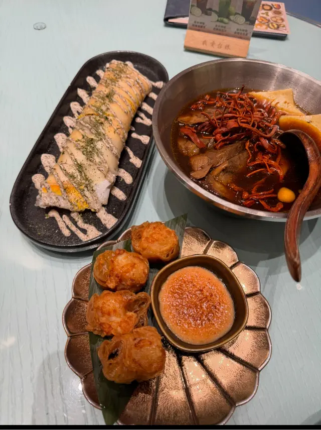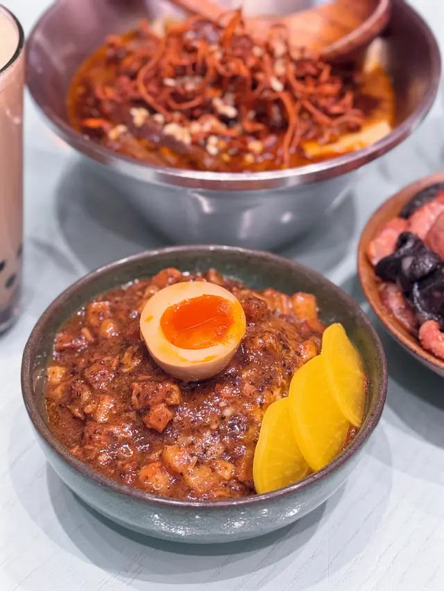 台灣菜相信也是不少香港人嘅至愛‼️我哋都唔例外🤭最近在商場辦年貨後去搵地方醫肚,發現一間有水準台灣餐廳無論食物及服務也不錯👍餐廳位於商場地下位置,樓底高空間十足,裝修很有特色,天花以海洋設計,環境寬敞,半圓形座位帶住小朋友坐得很舒服!由於太肚餓關係我哋極速揀咗午市限定便當套餐:🥢招牌鹽酥雞賣相相當吸睛🤩跟平常一般見到嘅鹽酥雞size較大,每一舊都好有份量,外層炸至又香又酥脆,𥚃面每一啖肉質都保留鮮嫩多汁,配埋軟糯嘅白飯真係絕配喔!🥢滷水牛腱每碗有數塊牛腱,屬厚切非常有口感,肉質煙韌腍身都易入口,脂肪比例分布均勻,送飯一流!🥢糖心蛋魯肉飯飯面鋪滿了滿滿的滷肉粒,豬肉又香又腍身,而且超多醬汁!每一啖都食到醬汁及肉粒,配埋糖心蛋超滿足😋飯嘅份量亦十分多,超足料~飽肚又抵食!🥢芋泥牛乳 香滑芋泥同香濃牛乳非常搭配,口感豐厚值得一試👍🥢檸檬冬瓜茶清新檸檬🍋加入冬瓜茶,清熱解膩之選!…查看更多