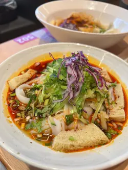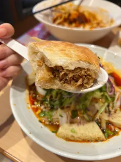 今天來到這間充滿驚喜的餐廳我點的是推薦的大碗油潑麵套餐。一上桌就讓人眼前一亮,潑麺呈現誘人的紅油色澤,醬香濃郁卻不死鹹,肉質鮮嫩多汁,搭配酸梅湯,簡直是絕配!整體份量十足,CP值很高。環境方面,雖然客人不少,但服務人員態度親切,上菜速度也快。餐廳裝潢簡潔明亮,帶有一點中國西北風格,適合朋友聚餐或一個人靜靜享受美食。總結來說,菜式特別,餐點品質也相當令人滿意。下次還會想再來嘗試其他的餐點,推薦給喜歡發掘新奇餐廳的你。Read More