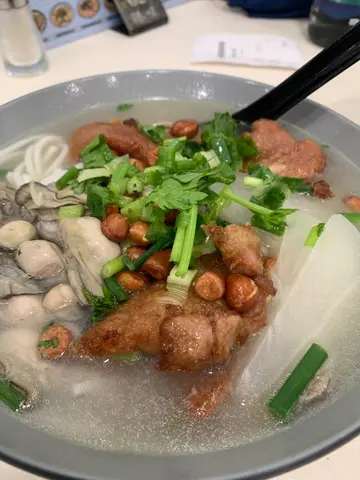 今日專程到工業區重訪久違的臻味,避開午市時段無需等候。點了豬扒蠔仔米線,豬扒醃得入味且軟嫩,但鹹度稍高;蠔仔新鮮飽滿,與記憶中水準一致。米線爽滑不糊,清湯底看似簡單卻層次分明,帶有淡淡骨香而不膩口。雖開在工業區,但湯頭用料實在,豬扒厚切、蠔仔給得大方,性價比不俗。整體偏向家常風味,沒有過多花巧,但勝在食材新鮮、調味樸實,適合想快速吃碗暖胃湯粉的上班族。可惜距離地鐵站比較遠需要行走一段較長的路才能到達。