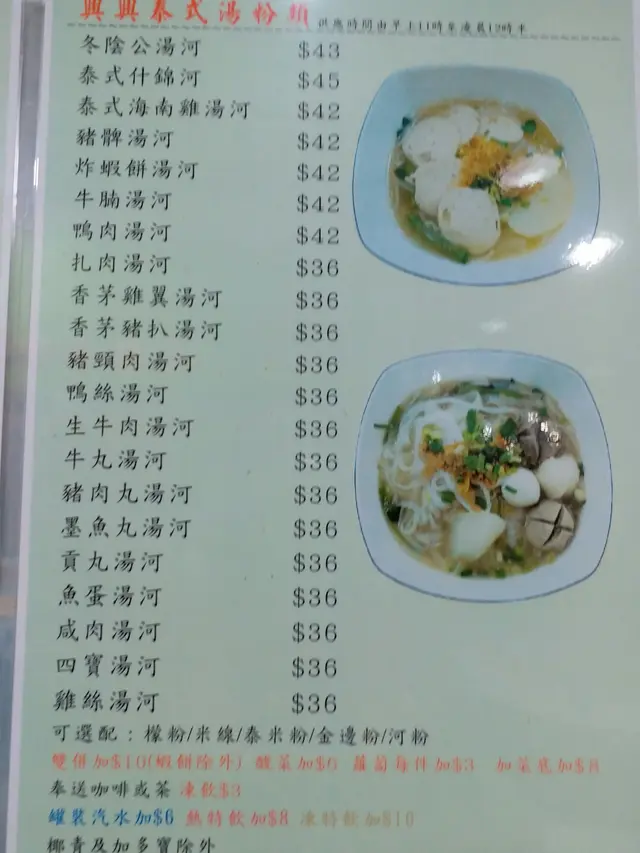第一次去幫襯,亦都係最後一次。雖然格局都似係做街坊生意,入去之前都冇乜expectation, 但見佢好似開咗好多年咁,衰極應該有個譜。我哋一人叫咗一個金邊粉,一碗係生牛肉加扎肉,另一碗係海南雞。生牛肉加扎肉金邊粉首先送上,生牛肉=10成熟肥牛,扎肉正常,不過碗粉係完全無味,湯底似就咁加滾水,咁就$42啦。海南雞金邊粉一樣係無味湯底,但海南雞味道同肉質都唔錯,同埋因為佢有雞油嘅關係,所以湯底係有啲味,不過其實都略嫌太油,呢碗粉盛惠$48。因為實在無心情影碗粉嘅相,所以我只係影咗餐牌。:(…查看更多