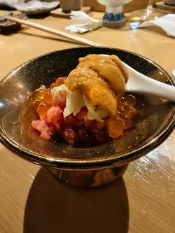 同vendor食weekday business lunch, 叫咗Omakase set (加埋一 近$600),total有12件壽司加最後會有一件手卷,前11件壽司非常唔錯,用料新鮮,值得一讚但係,去到第12件,急轉直下,海膽一食落去,超級苦!!苦到好似落咗黃蓮粉咁,係從來未食過咁苦嘅海膽......唔知係咪師父處理不當,但前面一直咁好,反差太大真係頗為失望......問過同枱其他人,大家果件都冇問題,可能係我唔好彩啦但真係禍不單行,去到最後嘅手卷食食下竟然有塊小骨,所以成餐飯算係虎頭蛇尾......呢個價位weekday食lunch應該有唔少其他選擇, 如果令顧客失望就絕對不會回頭了…查看更多