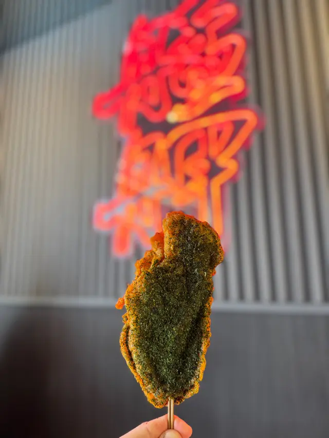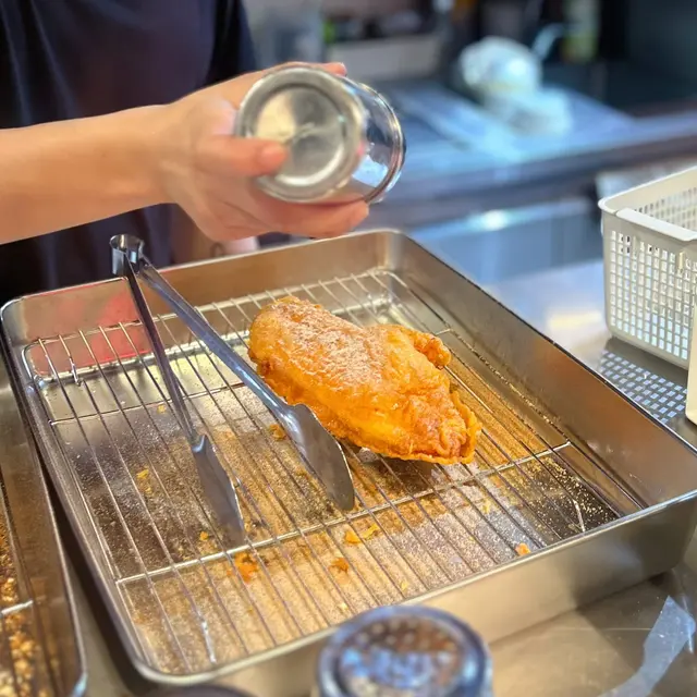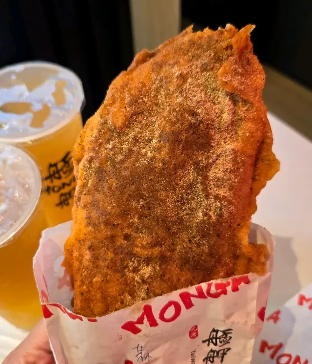 這間人氣小食店位於銅鑼灣的波斯富街,是來自台灣的人氣炸雞排名店,主打多種口味的台式炸雞。海外分店更設有香港限定口味—避風塘及蒜香,充滿香港特色。所有食品堅持使用鮮雞,絕不使用雪雞。每塊雞扒以厚切式切割,厚度多達約兩公分,高溫油炸時更能避免雞汁的流失,口感更紮實滿足。店內以型格的黑色為主調,設有少量堂食座位,開放式廚房能欣賞到製作過程。天王雞排 - $48招牌鎮店名物,嚴選高品質純釀醬油,風味較醇厚,更採用蜂蜜取代砂糖,帶有機又天然的蜜甜,吃起來帶有焦香感。苔客雞排 - $48整塊雞扒撒滿了海苔粉,散發出濃濃的海苔香氣。蒜香雞排 - $48滿佈香濃惹味的蒜鹽,濃郁的蒜香深深滲入雞肉中。起司雞排 - $58蓋上一大片芝士帶淡淡的鹹香,中間拉開有長長的芝士絲富奶香。…查看更多
