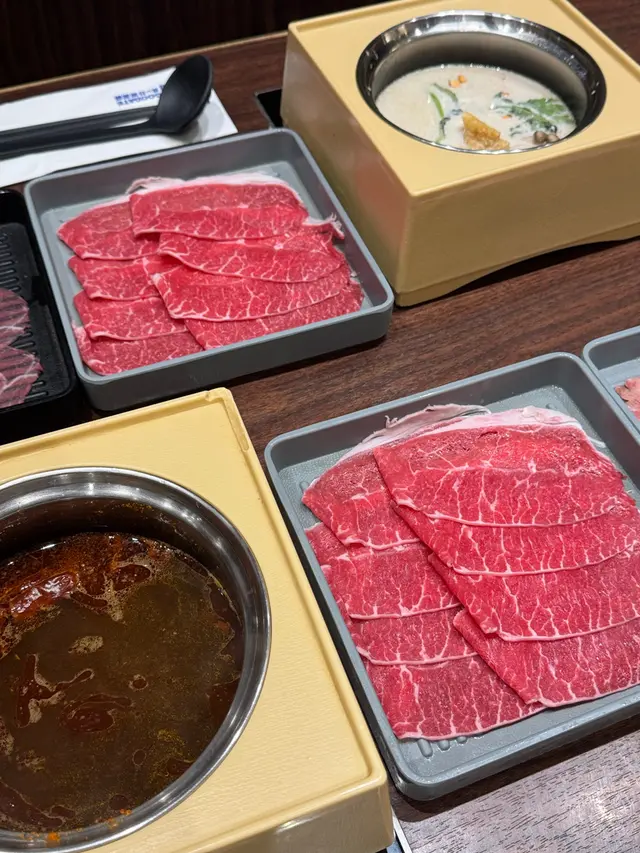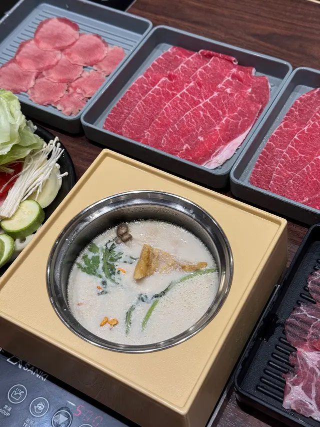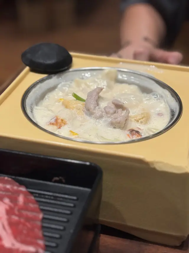 好耐冇打邊爐,揾到呢間係坑口東港城分店嘅日式火鍋店,dinner 時間去都幾多人,見到個環境都幾企理😊呢間火鍋店主打一人一鍋,90分鐘放題任食,有幾個價錢嘅放題套餐,最貴嘅係霜降黑毛和牛($398成人/$288小童)🤩唔同級別嘅牛會有唔同嘅價錢,我地就揀左$268嘅嚴選牛 Premium Shabu Shabu Course ($268成人/$218小童)😙🔻湯底方面有好多款,例如係四川麻辣、生姜雞、蕃茄、昆布,仲有新出嘅豆乳白雞湯同海老豚骨湯等,好多都好吸引,我同朋友都揀左壽喜燒湯底,佢會提供一隻生雞蛋🥚,湯底味道濃郁,店員定時會加湯😸🫶🏼🔻呢個course 有🥩嚴選牛肉、🍗雞脾肉同埋豬,一開始會每份肉各上一份,之後就可以手機落單。出面自助嘅食物都有好多款,例如各類嘅🥬蔬菜、丸、麵都有幾種,例如烏冬/拉麵/粉絲等,出面啲食物定時有人fill up, 睇落都好乾淨。🔻個人覺得牛舌同豬幾好食,一盤份量都幾多,而且用電話點嘅食物都黎得齊。☕️飲品有道地烏龍茶同綠茶可以任斟,仲有咖啡機同雪糕機,真係食到好飽🤪呢間火鍋食物同環境都幾好,性價比好高😋…查看更多