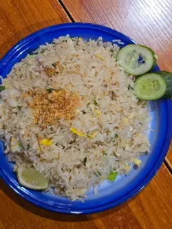 泰式咖喱一向都非常有特色,今次就揀咗個青咖喱配雞肉(仲有牛肉、豬肉可揀),個青咖喱同樣辣度有番咁上下,幾香、幾惹味,有微微椰香,而雞肉軟腍嫩滑,裡面仲有唔少豆角同茄子。本應叫咖喱,最好就搭啲薄餅撈汁食,不過,我哋揀咗個炒飯,打算用嚟撈汁。
