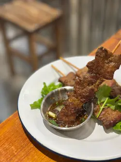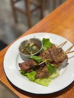喜歡的話記得like & follow我喔♥旺角通菜街新開了一間泰菜餐廳「EKKAMAI•艾卡邁」,餐廳裝潢簡約,走泰國街頭大排檔風。🇹🇭餐廳全由泰國人主理,制服靈感來自泰國中學生校服,廚師曾於多家酒店任職及接受過藍帶廚藝學校Le Cordon Bleu Dusit School培訓。🫡泰式豬肉串 ($68/3串) 是全晚的MVP!豬肉外焦內嫩,帶有煙燻香和五香調味,沾上特調醬汁,開胃解膩又好食!🤤