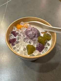 食完飯上朋友屋企坐下傾計, 大家都想食甜品, 佢介紹呢間甜品店的芋圓好食👍🏻, 係港鐵顯徑站A出口, 步行約幾分鐘就到, 甜品店除咗甜品和飲品之外,仲賣埋蔬果🍓🥦,附近住的街坊可以幫襯埋好方便, 店員好親切,話轉左秋冬,佢地最近開始有芋泥波提供, 我地都試下☺️餐牌除咗主打芋圓都有其他款式既甜品,想試椰皇不過賣哂,下次食🤩💜招牌甜品: 紫薯・芋圓屋大雜燴紫薯系:自家製三色芋圓、紫薯波、仙草凍、西米、寒天晶球、珍珠, 材料多到呢, 真係好豐富!三色芋圓煙煙韌韌,好QQ, 配搭椰汁花奶底,味道夠哂層次,勁滿足,紫薯波好香, 加埋芋泥波好綿滑,各有千秋💛爆脆芒果西米撈有驚喜,金黃色芒果大大件,超鮮甜多汁,西米脆脆好大粒, 咬落去脆卜卜,芒果爆爆珠一咬即爆, 好刺激, 加埋芒果汁一齊食,口感豐富得黎即刻感覺好冰涼,推介🧡百香果爆珠百香果爆爆珠、珍珠、黑糖水晶、愛玉凍、西米,呢款第一次食,味道酸酸甜甜, 加埋爆爆珠和其他材料一齊食,好REFRESH!店員服務好又很貼心🥰,有主動問是否需要調整甜度,總括甜品味道不會過甜,很適中,份量多,食甜品必選…查看更多