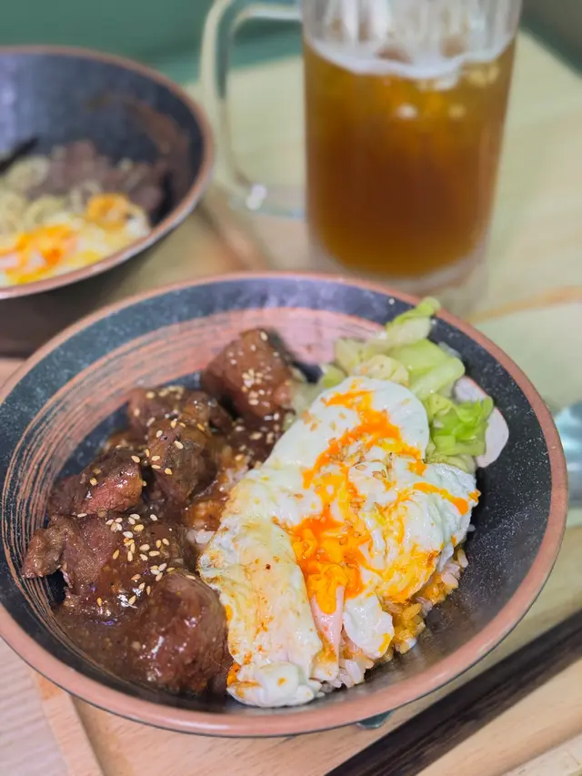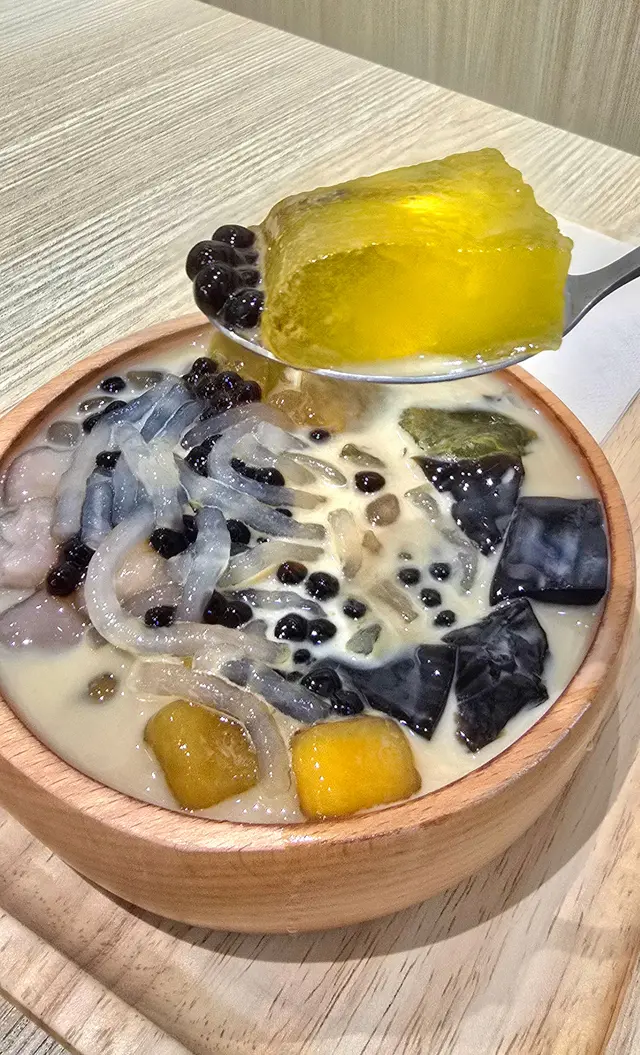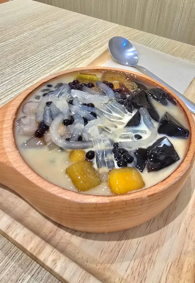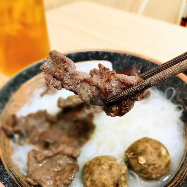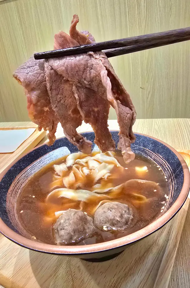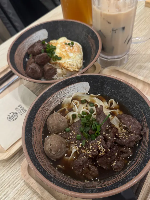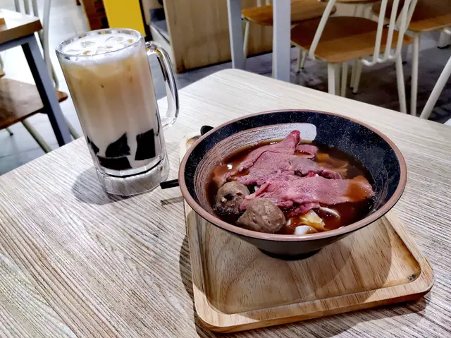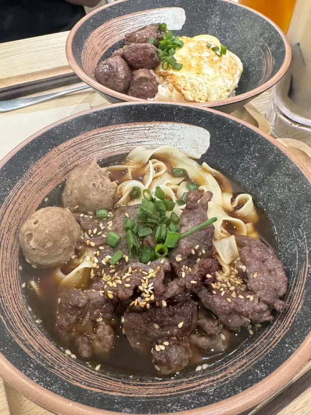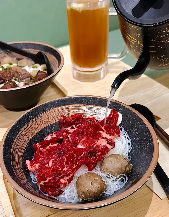 位處屯門時代廣場的遇見芋圓,位置不太顯眼,但食物飲品都俱特色😋今次經過就來嚐嚐⭐堂灼騸牯鮮肥牛牛丸配關廟刀削麵薄切肥牛紋理賣相佳😍輕輕倒入熱湯一灼即熟,入口鮮嫩甘香~關廟刀削麵有咬勁,整體很有台灣風味😋⭐香煎騸牯牛冧肉牛丸配新竹米粉冧肉軟嫩到幾乎不用咀嚼~手工牛丸彈牙,搭配台灣直送新竹米粉吸盡精華,每一啖都係享受😋💜🧡甜品控尖叫!巨型芋圓來襲 🍧巨無霸芋圓2號(黑糖桂圓紅棗湯)真・比普通芋圓大3倍!芋圓控必點~口感超Q彈💜 搭配養生黑糖桂圓紅棗湯,甜度剛好還能暖身,紅豆煮得綿密起沙,波霸黑糖味濃郁,層次豐富到犯規!🍧仙草4號(桂花茉莉綠茶湯)驚喜度滿分!清爽桂花茉莉綠茶取代傳統糖水,仙草滑順帶淡雅茶香🌼手作小湯丸軟糯不黏牙,紅豆+波霸雙重口感,清新解膩首選~〰️ 飲品推薦 〰️🥤仙草凍烏奶茶茶香醇厚不死甜,仙草凍滑溜順喉~台式奶茶經典之作🥤小芋圓冬瓜茶古早味冬瓜茶清甜解渴,搭配迷你芋圓增加咀嚼樂趣,完美收尾!📍總結:牛肉品質絕對對得起價錢!限量騸牯牛入口即化,甜品創新又不失傳統風味,屯門難得的高質台式小店~真心推薦給追求食材品質的你!…查看更多