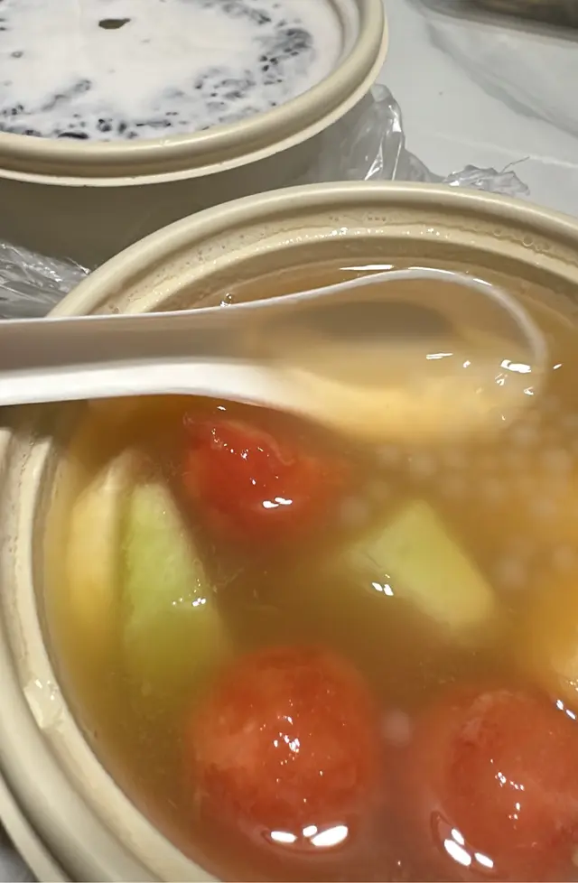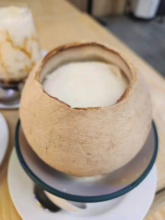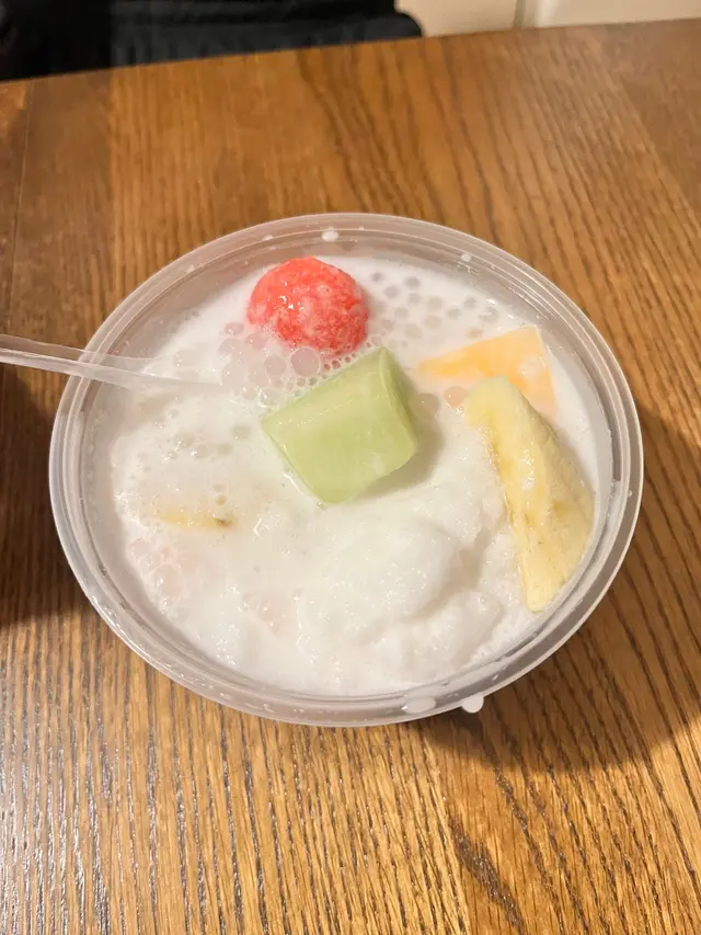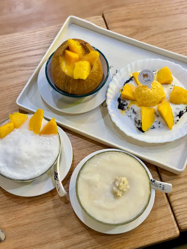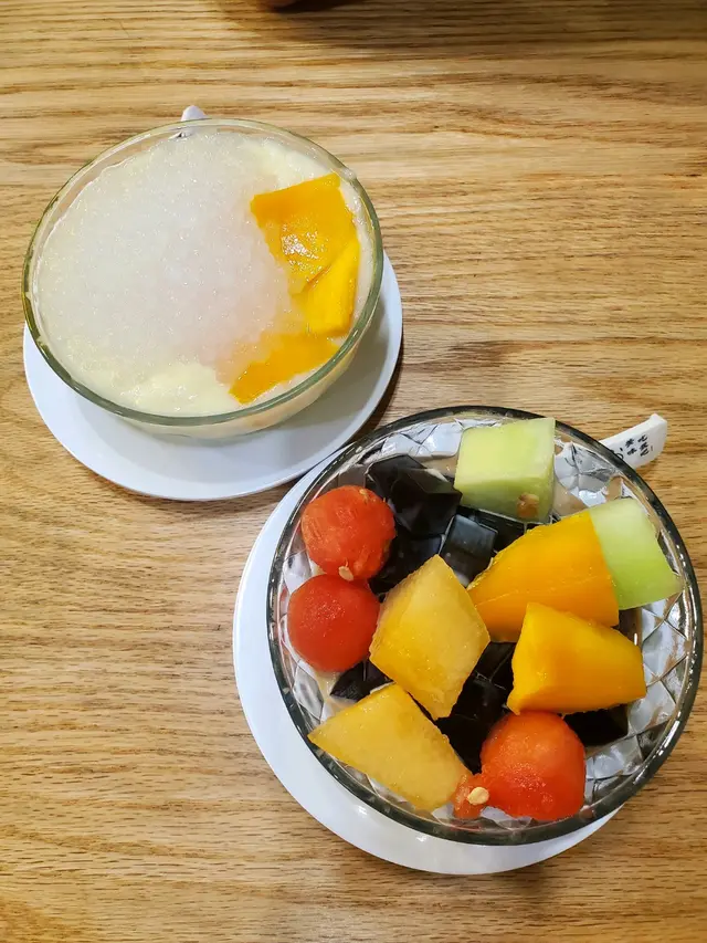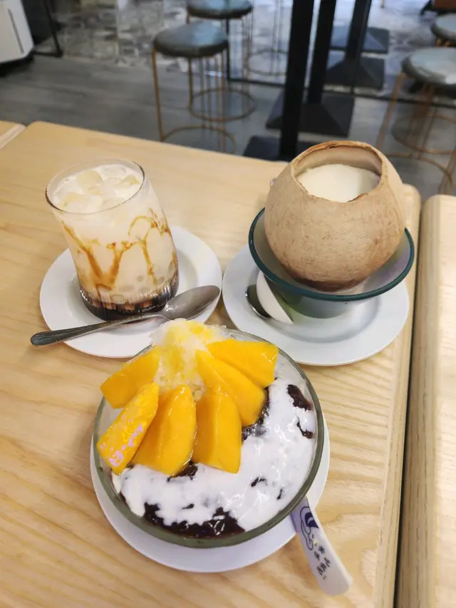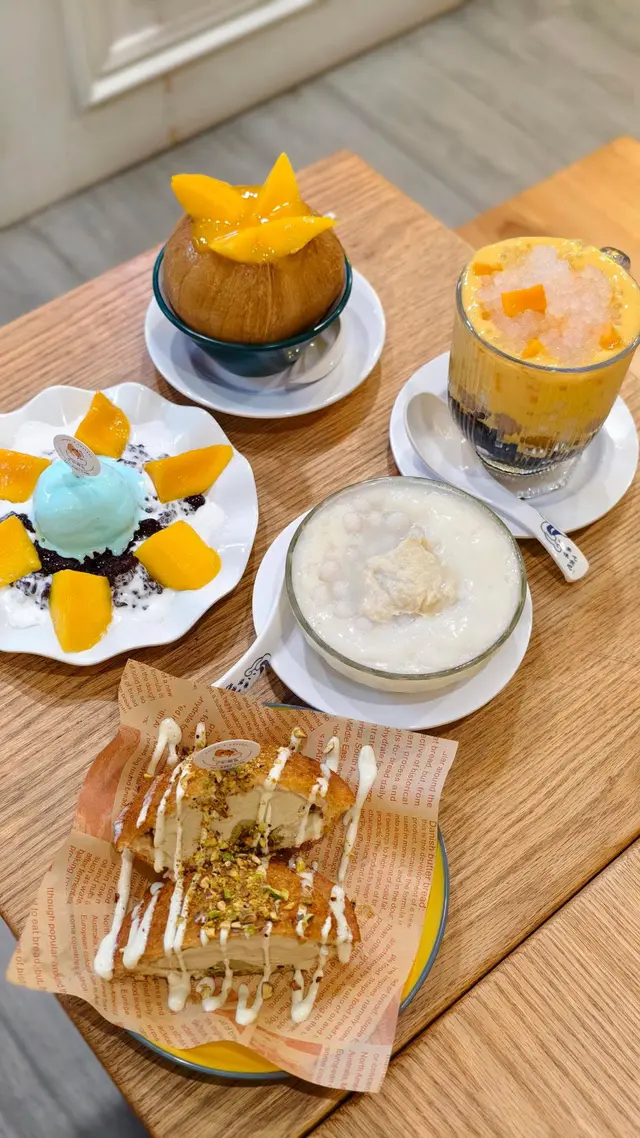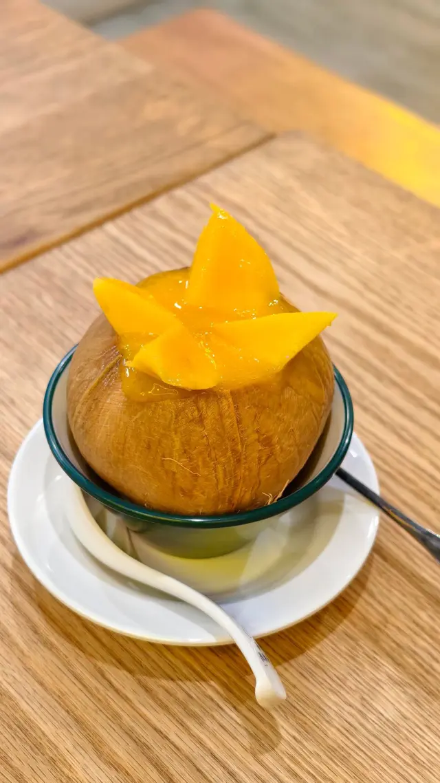 ⸝⸝⸝♡ ꔛ ꔛ ꔛ ꔛ ꔛ ꔛ ꔛ ꔛ ꔛ ʕ´•ᴥ•ʔ ‧˚ 1️⃣ 榴槤小丸子撈($47)一上枱就聞到好濃烈嘅榴槤香味🤣榴槤肉綿密得嚟又creamy,配搭椰汁更加突顯榴槤天然嘅甜味,證明真材實料,而唔係有人工添加嘅死甜味!小丸子Q彈有咬口,份量都幾足夠,食到最尾依然仲有好多粒小丸子。2️⃣芒果蛋白椰皇凍($68)用原個椰皇盛載,表面鋪滿鮮甜多汁嘅芒果,賣相精緻。下層的蛋白椰皇凍相當有驚喜,口感好嫩滑,一入口就有清甜嘅椰香味,甜度恰到好處,食完成個都唔會感覺有負擔。食到差唔多仲可以刮啲椰皇肉出嚟食,又有唔一樣嘅口感🤣3️⃣炸開心果雪糕飛碟($55)有三款口味,包括芒果、榴槤同開心果,我哋揀咗而家最hit嘅開心果🤣🤣飛碟即叫即整,外層嘅餅皮炸得金黃酥脆,包住一大球開心果雪糕,冷熱交融下更加顯得外脆內軟,相當過癮。雪糕嘅開心果味幾濃,再灑上粒粒果仁碎同幼滑嘅開心果醬,為整體嘅口感增添層次。4️⃣雪糕香芒紫糯米飯($44)海鹽雪糕(+$5)我哋揀咗海鹽味雪糕,相對比較少見,估唔到海鹽味幾出幾清新。不過記得要快啲食,如果掛住影相會融得好快🥹平時多數食芒果糯米飯,今次轉咗紫糯米更加健康,口感軟糯得嚟有咬口,帶有淡淡的香氣,配合芒果嘅果香同椰奶嘅濃香,入口依然感覺清爽。5️⃣霸王甘露($57) 超級足料!!!!一眼已經望到超級大杯,原來配料幾乎佔咗大半杯🤣🤣🤣有芒果、西柚、西米、芋圓、小丸子、涼粉、珍珠,口感非常豐富,完全係煙韌控嘅福音🤤⸝⸝⸝♡ ꔛ ꔛ ꔛ ꔛ ꔛ ꔛ ꔛ ꔛ ꔛ ꔛ ʕ´•ᴥ•`ʔ ‧˚🌟想知道更多美食🤪記得follow@mochicouple_hk啦😍🎉📸📍 長沙灣青山道195號恆輝樓地舖🚇 港鐵長沙灣站A2站出口,步行約4分鐘🕒 Mon-Sun:15:00-01:00…查看更多