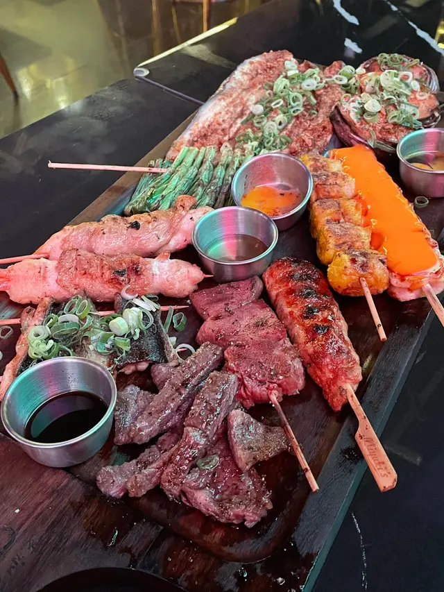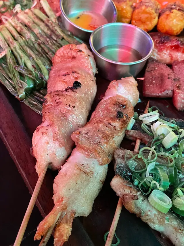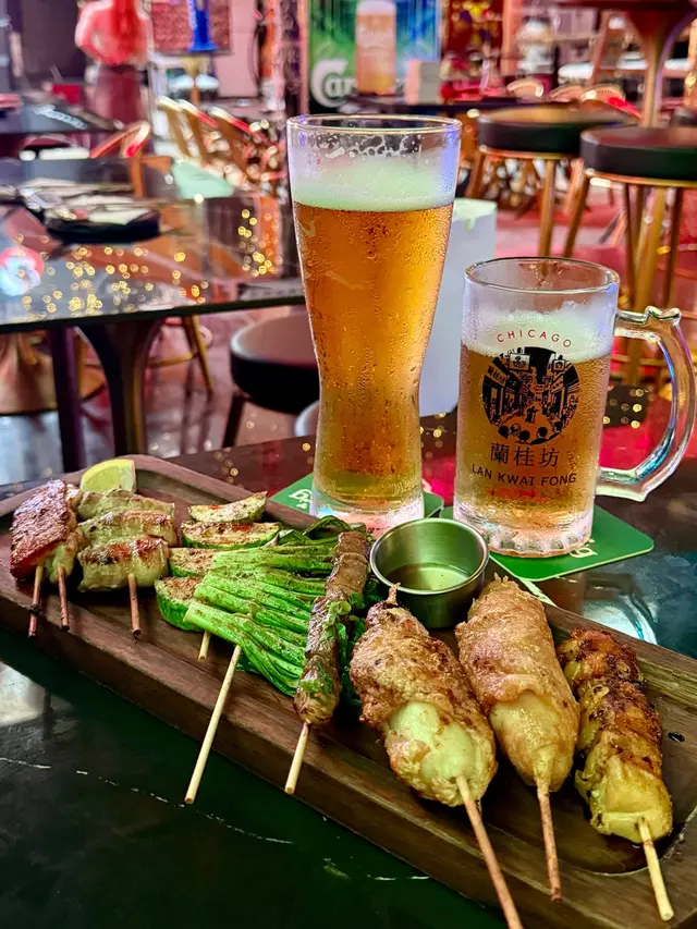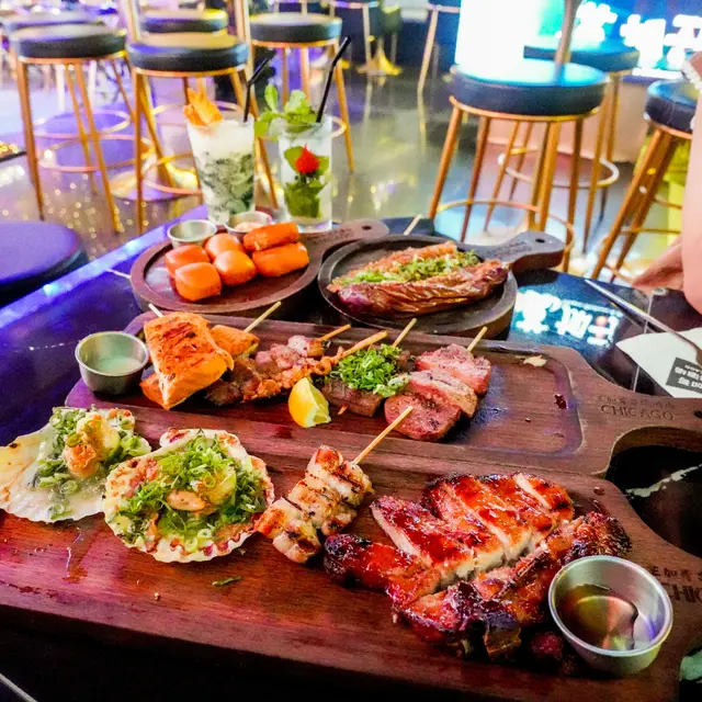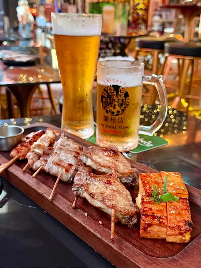 最近同朋友去蘭桂坊玩行過見到有間門口色彩繽紛店舖叫做芝加哥串燒酒場自成一角氣氛環境都很好 一於試吓先! 入面主打係食串燒同埋飲酒鍾意同朋友傾偈食嘢睇球賽不容錯過用QR code落單,方便快捷 而且佢可以俾你揀咗辣度先人氣雞皮墨魚滑+芝士雞肉串+雞肉軟骨棒加蜜糖雞翼雞皮脆口墨魚滑彈牙 好impressive!送酒一流燒雞皮 呢個個人認為係必食 雞皮,燒到好似薯片咁脆 每一口都好滋味黑松露醬燒牛油果 呢個真係牛油果愛好者嘅至愛 牛油果燒到溶溶地加埋黑松露同埋沙律醬食口感豐富creamy極品即燒乳豬 外皮燒到薄脆 肉質嫩滑不臊 而且有啲香甜嘅叉燒醬汁 估唔到喺呢度都食到高質嘅串燒炭燒豬頸肉外皮燒到好香脆加埋嗰啲油脂香濃彈牙極品紅東升斑柳 魚肉質地結實 充滿魚香油脂 一定要趁熱食!招牌茄子燒 茄子燒到軟綿綿加上大量蒜頭醬汁同吃 又係送酒神器汁燒京蔥串 醬汁香濃甜甜地甜 京蔥爽脆無渣 正炸厚切薯片 熱辣辣卜卜脆最鍾意食薯仔!咖喱魷魚串 唔會燒到老曬咬唔開外脆內軟 鹽燒鮮淮山 好開心喺呢度可以食到鮮淮山 厚切咁燒 外面焦香 入邊甘甜帶清香我哋都點咗sangria 同月桂冠 濁酒pinot Noir Gustave Lorentz Reserve 去襯吓啲串燒個人認為月桂冠 濁酒 的口感及稻米香味重口綿滑 配搭肉類及燒烤料理最佳最後我哋食咗日本一口番薯仔燒 作為甜品番薯仔黃心燒得綿密 ,為呢一餐畫上甜蜜句號下次會再嚟試吓其他款式嘅串燒,而且呢度服務甚佳 也會為我哋介紹串燒值得一讚…Read More