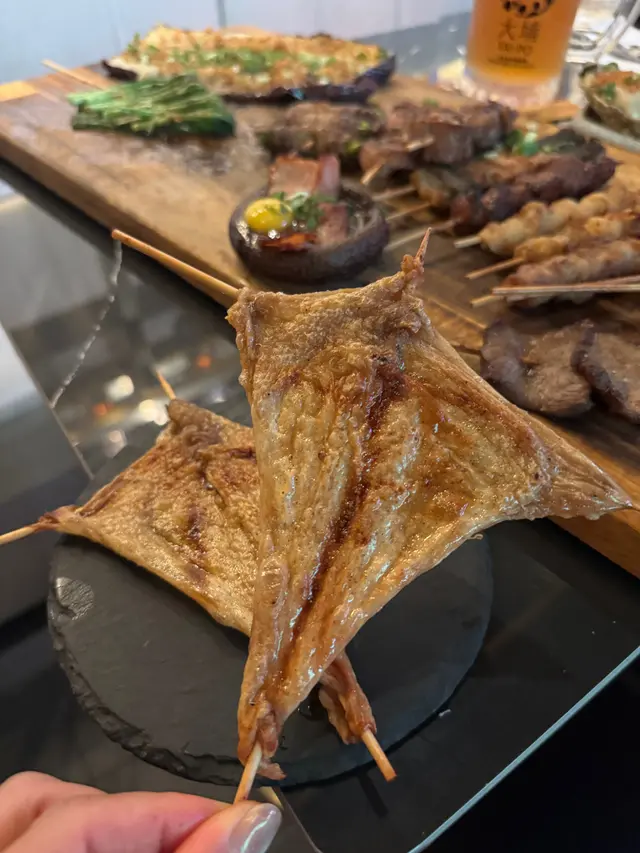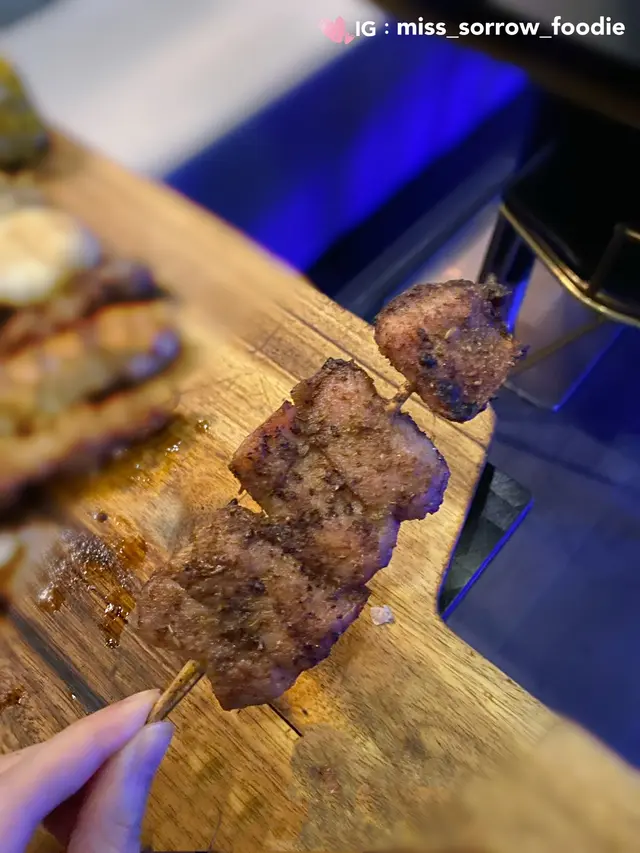 芝加哥已經係第三次黎幫襯,好食既餐廳先會播陳完一次又一次再一次🤩環境方便同上兩次黎都係一樣,環境設計非常注重氛圍,燈光較為偏暗,好適合飲酒同埋同朋友傾偈👍🏻👍🏻而且背景音樂播住90年代既流行曲,仲可以一邊聽歌一邊食野飲酒。而且店內的裝飾亦都係好有心機,除左燈光外,亦有唔同既酒陳列品擺左係牆上邊比人欣賞🥳食物方面亦都比之前多咗好多唔同嘅選擇,多咗好多唔同嘅海鮮種類可以選擇,而且豬、牛、雞亦都比之前多咗既配搭同埋部位,所以今次黎食都可以食到之前冇食過嘅嘢種類。今次我哋叫咗炭燒豬頸肉、燒蜜汁叉燒、芝士雞髀肉串、雞翅包飯、黑糖雞髀肉串、蜜糖雞翼、明太子玉子燒、沙嗲牛串、金菇牛肉卷、安格斯牛肉蔥串、安格斯牛肉蘆筍串、 羊肉串、芝士北海道魚糕、椒鹽燒白鱔、茄子燒、白松露薯條、燒雞泡魚乾、忌廉蟹肉餅同埋兩杯cocktail,sex on the beach同Pina Colada。 雞肉串,外邊少少焦但入邊里內嫩滑多汁既;或者是多汁的牛肉串,肉質鮮嫩,彈牙十足,唔會overcook燒到好韌👍🏻👍🏻而令我覺得有驚喜既係既係明太子玉子燒。厚厚的玉子燒,裡面包裹著豐富的明太子,每一口都能品嚐到濃郁的蛋同明太子既味,香氣四溢🤩🤩🥳🥳飲品方面,Pina Colada都幾唔錯,佢股濃郁的椰子香氣和甜甜既菠蘿味道。呢杯雞尾酒的甜美口感不僅容易入口,更加適合唔鍾意酒精味道太濃嘅人🥳…查看更多