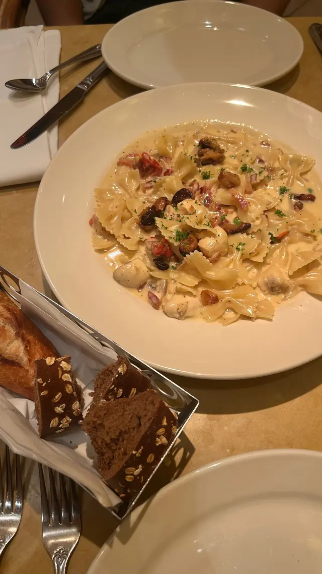呢間美國西餐人流真係冇少過 Weekend 去到夜晚要等1個鐘左右 係出面排隊有個提示機等大家知道call緊!入面環境真係好warming 又大又多人整體就係好熱鬧好有食慾嘅場景 今次帶大家睇下有咩必食!🍞坐底就會有人頭份量嘅包 黑色係燕麥黑糖包 黃色係酸種/法包(有小小酸) 兩隻拉扯感都好夠 可以點牛油或者pasta醬都勁夾!🍝Louisiana chicken pasta💰228蝴蝶粉係cheesecake fac算係吸引之一!!相比起其他意粉 撈得勁creamy 辣味比較突出 份量都真係幾多 大大舊3-4塊雞扒炸得非常乾身(係黑脆嘅樣)立身於意粉之上vs.🍝 Farfalle with chicken and roasted garlic蒜香蘑菇雞肉蝴蝶粉都係另一隻經典 呢款就會係蘑菇 雞胸肉搭配奶油醬 會冇咁熱氣但同時都幾漏 但蝴蝶粉真係好有嚼勁!🌮factory nachos💰173冇諗過呢間竟然係我食過最滿足嘅nachos😭(可能因為份量多)大大pat 牛油果蓉 番茄粒粒同cream直接dak係nachos上面 外圍部分嘅粟米片好乾脆 入面個D被cheese浸淋我都超級鍾意 份量來講真係無得頂🍛shrimp and chicken combo💰228見到有人話呢個係signature must try 中間嘅飯(唔可以話係燴飯 似墨西哥個隻乾身D嘅米)被一圈嘅creamy醬汁圍住可以直接將飯撳低浸入D醬度 撈勻都辣辣地 幾有滋味🥗shierla‘s chicken and avocado salad💰228想要清新沙律?sorry we dont serve that講笑但係沙律來講呢度都係default撈勻曬D牛油果醬 所以清新得來其實都好滋味!🍕the everything pizza💰162我個人覺得美式餐廳可以skip佢地嘅pizza 雖然芝士拉絲感十足 而crust都好有咬口同脆身 不過形狀比較特別 而且可以留返去D正宗嘅食DESSERTS甜品部分原來食完waitress係會拎住menu來問要唔要cheesecake 不過來到就梗係要試啦😻🍰oreo dream extreme cheesecake💰93我地有研究過究竟邊隻會係最膩嘅候選人 而呢款榮獲頭五 雖然predict左幾漏 但可能已經受甜品洗禮完 同想像中都有D差別冇話特別漏講返呢個cheesecake有5層 最top係oreo碎插係朱古力ganache入面(偏後有pat實淨D我覺得似食緊生朱古力)下面係oreo cream 最中間係混左oreo嘅cheesecake本體 下面就係朱古力mousse同朱古力蛋糕體(背面有小小朱古力碎)口感來講五重真係好豐富 可能朱古力層多所以會漏 但整體唔會真係美式甜度 鍾意oreo嘅值得一試!btw我覺得佢地嘅whipped cream簡直就係用來解膩🍰肉桂捲芝士蛋糕💰93雖然好鍾意cinnamon但呢隻冇想像中出色雖然疊得好高但係好容易融化之後就塌左 相比起食cheesecake似食whipped cream多D 肉桂味唔算特別突出🍫Linda‘s fudge cake(特濃朱古力蛋糕)💰93呢個唔係godiva個隻signature cheesecake 其實係choco brownie 每一層中間都會再夾住choco mousse所以都真係朱古力上頭咁 易膩決定左每次去都要試新野 睇下有冇個list可以跟 儘量試多D menu嘅野😋…查看更多