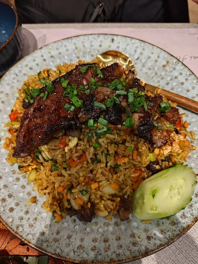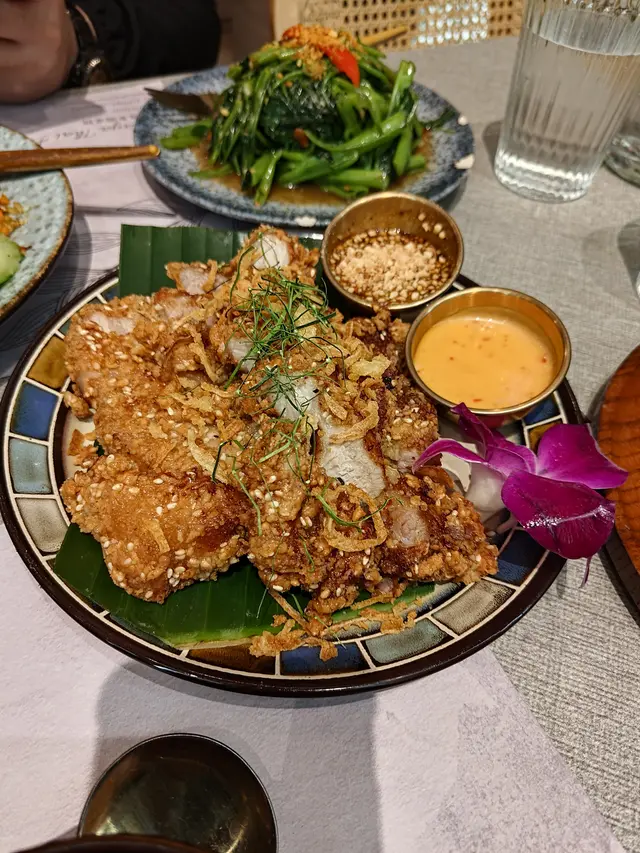 星期一去,有預約,但也晚了15分鐘進去,人潮很多,門口7點左右就有20人等,大部分都有預約,不預約基本進不去吧。據說有2層,我這次坐在地下那層第一次來,跨區來,還沒進去就想好吃什麼。椰青必點,而且限定,那天8點後剛剛好賣完了。燒五花肉是好吃,但其實很油膩,吃不了很多。燒豬頸肉,哇,堪稱一絕,非常好吃停不下來,下次必須再來再點的菜。馬拉通菜,小辣也很正常發揮。最意外是那牛肉炒咖哩飯(菜名記不住,只知道是$128的)那牛肉好吃的程度媲美豬頸肉,實在太驚訝了職員非常友善,人也很帥,即使是跨區,下次還要來…查看更多
