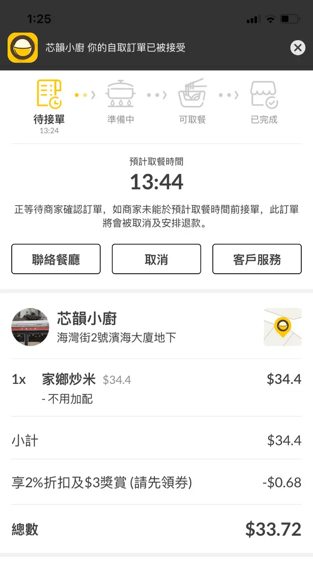 今日透過 OpenRice 下單外賣,12:38落單,預定13:03取餐。我於12:55抵達餐廳,餐點已整齊包好放在取餐區,openrice的預計時間比較保守。。餐點為常餐組合,包括:日式煎餃、出前一丁、豬仔包、凍檸茶及磨菇奄列。整體食物仍保持溫度,算是合格。味道方面略顯平淡:- 🍜 *出前一丁* :缺少麻油香,湯底偏淡,但麵質尚算彈牙。- 🥯 *豬仔包* :口感偏膩,未見驚喜。- 🥟 *煎餃* :中規中矩。- 🍳 *磨菇奄列* :是整餐中最出色的一道,蛋香濃郁,口感滑順。- 🧊 *凍檸茶* :清爽解膩。忙碌時段快速解決一餐。若能在味道上稍作提升,將更具吸引力。…查看更多