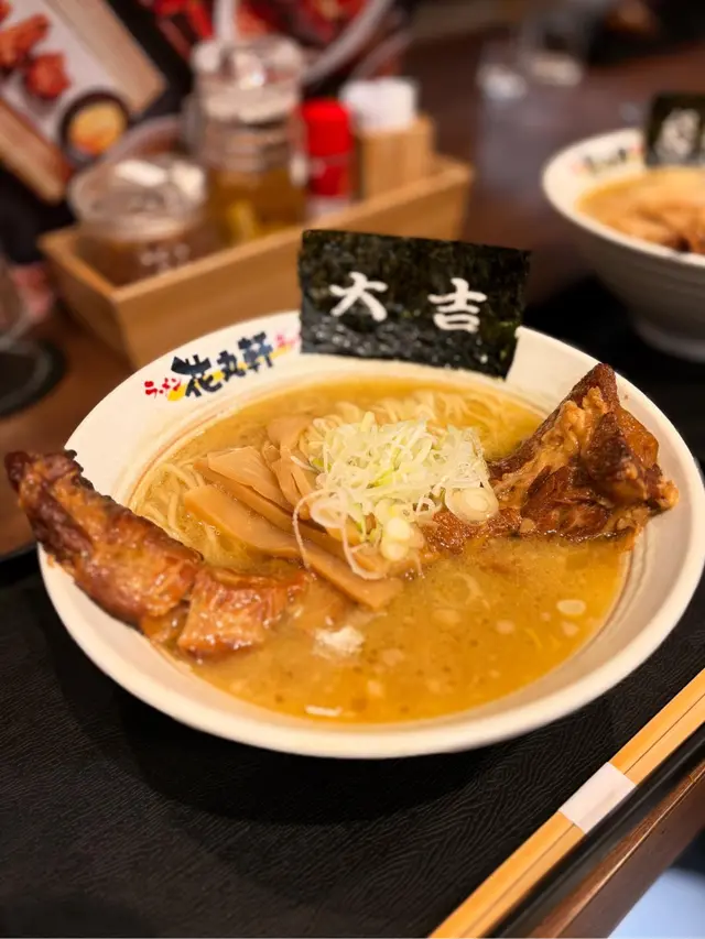 📍 花丸軒 (中環) @hanamarukenhk 在繁華嘅中環裡,隱藏了大大小小既美食,只要用心留意,香港人真幸福,因為美食總是在附近。今日接老婆收工,老婆見我咁好,帶我去食我最愛既豬軟骨拉麵,呢間餐廳出名好吃,等我會一會佢先。🌟招牌原條慢煮豬軟骨拉麵配溏心蛋 $148店員為我們送餐果一刻,碗內出現「開運」既紫菜,令人會心微笑一下,食完拉麵感覺很幸福🥰,原條豬軟骨唔講笑,真係好好食,佢入口很腍滑,最好食係軟骨部份,真係食得出用左長時間炆,又唔會乾柴,再配溏心蛋,為呢餐劃上完美句號。🌟炙燒叉燒沾麵 (率先試) $128好多餐廳麵會有沾麵食,但今次呢個新沾麵令我覺得一定要推薦,因為餐廳用左好香濃豬骨湯整,飲啖湯竟然不咸,仲有好香油脂與豬骨咪,我初頭都驚太咸要飲好多水,但竟然可以大啖咁樣食,麵條好掛汁,叉燒偏向半油半肉,非常均衡。🌟唐揚炸雞 $52餐廳用了新鮮既油將雞件快速生炸,令外表金黃,內裡juice,唔會油膩,又鬆脆,真係上品。**❌不收加一服務費**୨୧┈┈┈┈┈┈┈┈┈┈┈┈┈┈┈┈┈┈୨୧ 📍 花丸軒 (中環)🏠中環荷李活道39-43號地舖#hkfoodstep#hkfoodstep中環#hkfoodstep拉麵#hkfoodstep日式 #hkfood #hkfoodie #hkcouple#中環美食#花丸軒#日本菜 #foodie #高質 #拉麵 #中環美食 #香港美食 #過江龍 #花丸軒 #日本拉麵 #慢煮之魂 #中環美食 #大館 #拉麵關注組#hanamarukenhk…查看更多