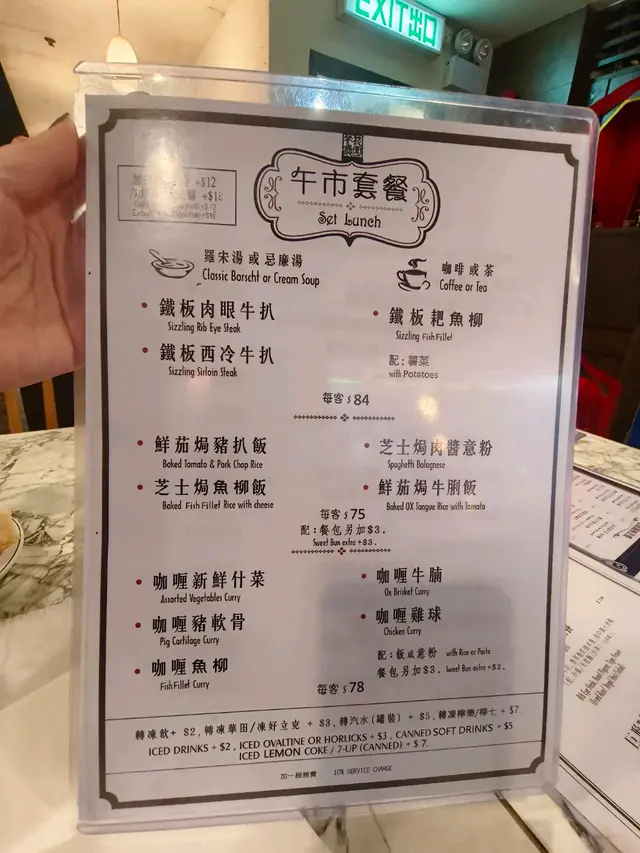 星期六同女朋友去食,6點半前位算多,唔使等就入座,入面有好多卡位。點餐侍應沒話好沒禮貌,都係同正常茶餐廳夥計差唔多,但叫嘢之前最好諗好食咩,有咩唔明可以問,侍應都笑著口咁回答。如果點扒餐,記得7成熟!7成熟!果日我叫左鑊仔牛扒-5成熟(伏),女朋友叫做肉眼扒-7成熟(ok,不過不失)記得唔好點埋d唔知咩黎嘅扒餐,叫翻肉眼,西冷,t骨就唔會伏最後提多次,記得叫7成熟!