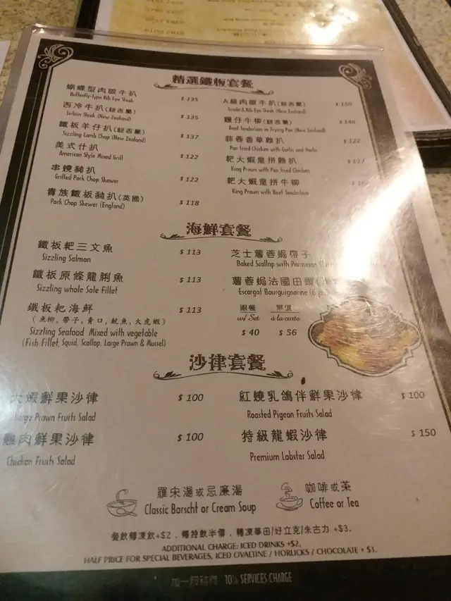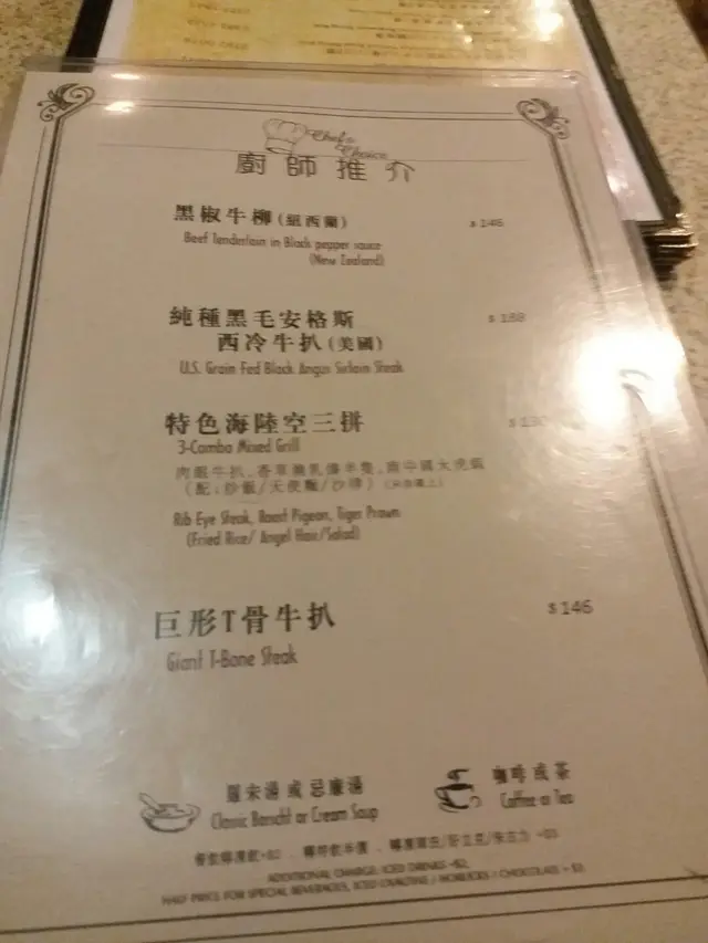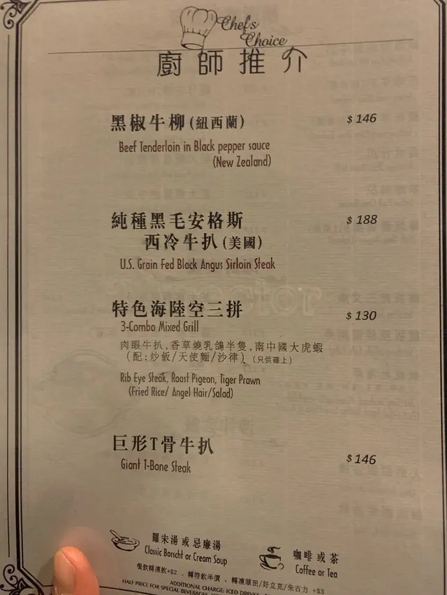 行經旺角,要食個快飯,咁就黎試下花園。話曬都係呢處開左咁耐,但就未幫襯過,今日終於黎食。其實門面都知係d 好old school 既店舖,果然入面既裝修都有港式舊茶餐廳既面貌。D 員工都相當有禮貌。我毫不猶豫揀左個1號牛扒餐,揀左意粉。同埋要左個紅湯個羅宋湯不過不失,味道普普通通。終於等到個餐黎,分量都夠多,而且個扒係大塊同厚,食落好淋,好易咬,同一般茶餐廳唔同。呢個水準對得住呢個價錢!!最緊要係地點夠方便。…查看更多