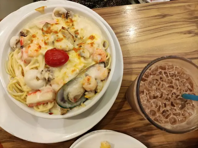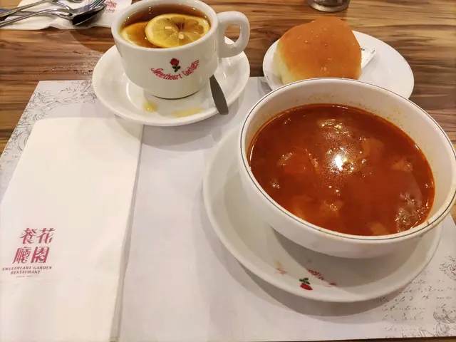 抵食提前晚餐 BLACKROSE2016等級32021-09-23654 瀏覽 關注 今日試咗一間懷舊餐廳,就係花園餐廳,5 :35 入座,趕得切食下午茶,今次終於可以試鐵板肉眼牛扒5成熟。香濃嘅羅宋湯,入面有西芹,蕃茄,洋蔥,有少少牛腩粒,夠香濃 。一個軟淋淋熱辣辣嘅牛油餐包,一杯香濃嘅熱檸茶,熱辣辣嘅鐵板上枱,侍應倒下蒜蓉汁,香噴噴 ,牛扒夠juicy,有一條小棠菜,另外一小碟 粗粗薯條。一碟只是焗海鮮意粉,最頂鋪少少香濃嘅芝士 ,有青口,蝦仔,八爪魚仔,蟹柳,白汁做底,大大碟,好抵食。配一杯香濃嘅凍朱古力。下午茶無需加一,侍應叔叔有禮貌。我哋坐卡位,餐廳乾淨冷氣足夠。…查看更多+ 2以上食評乃用戶個人意見 , 並不代表OpenRice之觀點。讚好分享抵食提前晚餐 花園餐廳 (東廣場) https://s.openrice.com/QrbT0XQCzW0檢舉 張貼 評分4味道4環境4服務4衛生5抵食用餐日期2021-08-28用餐途徑堂食人均消費$64.5 (下午茶)