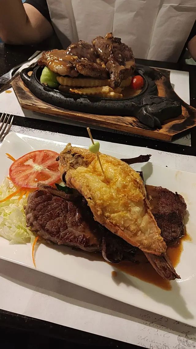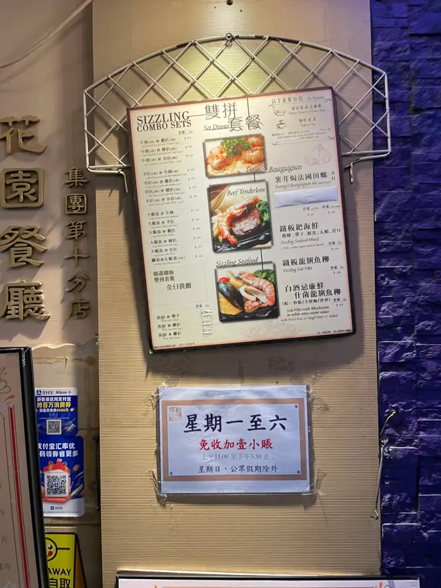 夜晚忽然間好想鋸扒就去咗銅鑼灣花園餐廳鋸一個港式扒夜晚八點去到人流唔算好多一入到去,侍應好快安排到座位俾我地之後就落單我就叫咗個晚餐A 鐵板帶骨西冷牛扒配薯菜 ($125)朋友就叫咗呢度出名嘅蝴蝶型肉眼牛扒 ($149)兩個餐分別都配餐湯同埋咖啡茶一落完單好快就上埋餐湯同餐包俾我地餐包配忌廉湯好好食而鐵板扒上到一如既往都係熱辣辣侍應喺你面前淋汁但係講真我覺得兩款肉嘅味道其實差唔多肉質都係淋唔太食得出牛味可能落嘅醃料其實一樣所以我唔太食得出分別咁嘅價錢鋸到扒,算唔錯呀~…查看更多