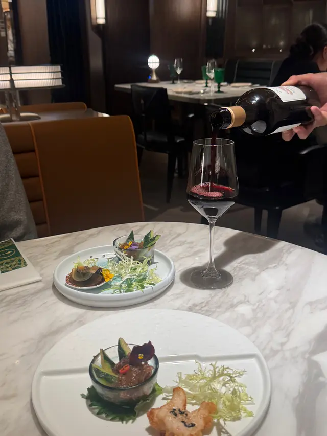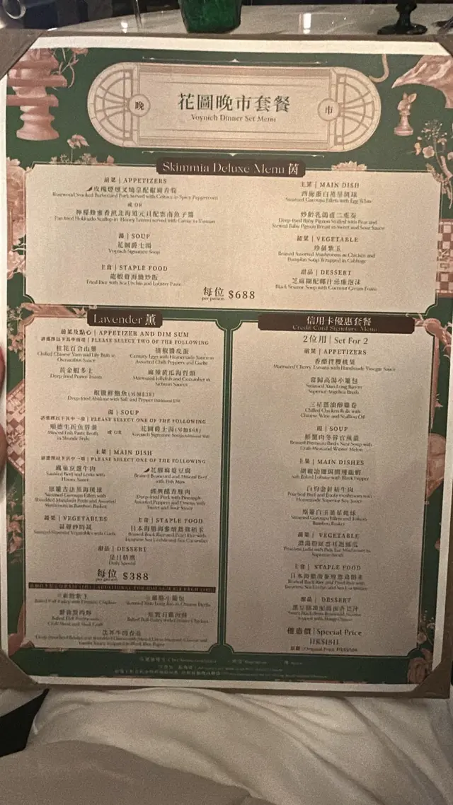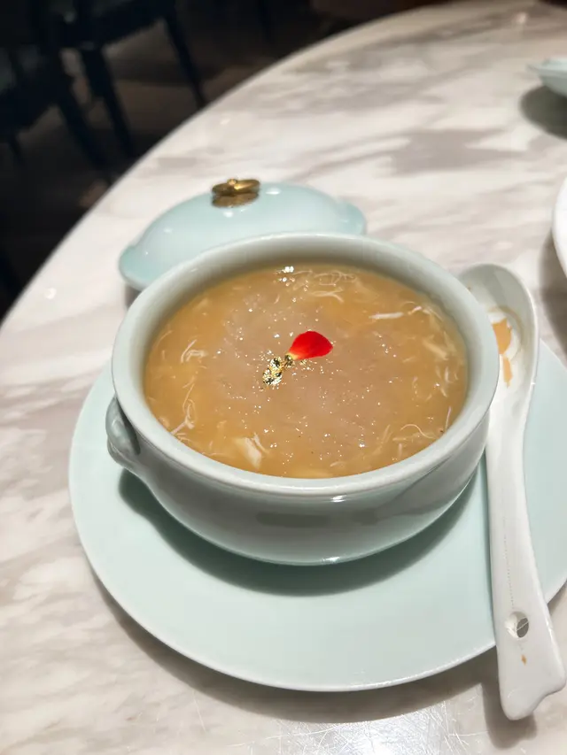 自費去食我哋去到嘅時候見到佢有幾個唔同嘅set我哋五個人就嗌咗分別兩個688,3個388之後我哋有諗過佢個份量會比較細但係我哋冇諗過佢嘅份量係細到每樣得一件🤣所以最後我哋一份蝦多士分咗5細舊嚟食佢最出名嘅爵士湯係真係幾好飲本來我哋大家都以為唔夠飽但係當佢全部嘢上齊晒之後我哋食完啱啱好夠飽溫馨提示如果你哋想影相好睇啲啲光冇咁奇怪嘅話就盡量唔好坐佢最大嗰張枱或者食完飯之後同佢哋講聲出去出面花園或者睇吓可唔可以俾其他枱你哋影相…查看更多