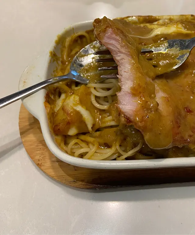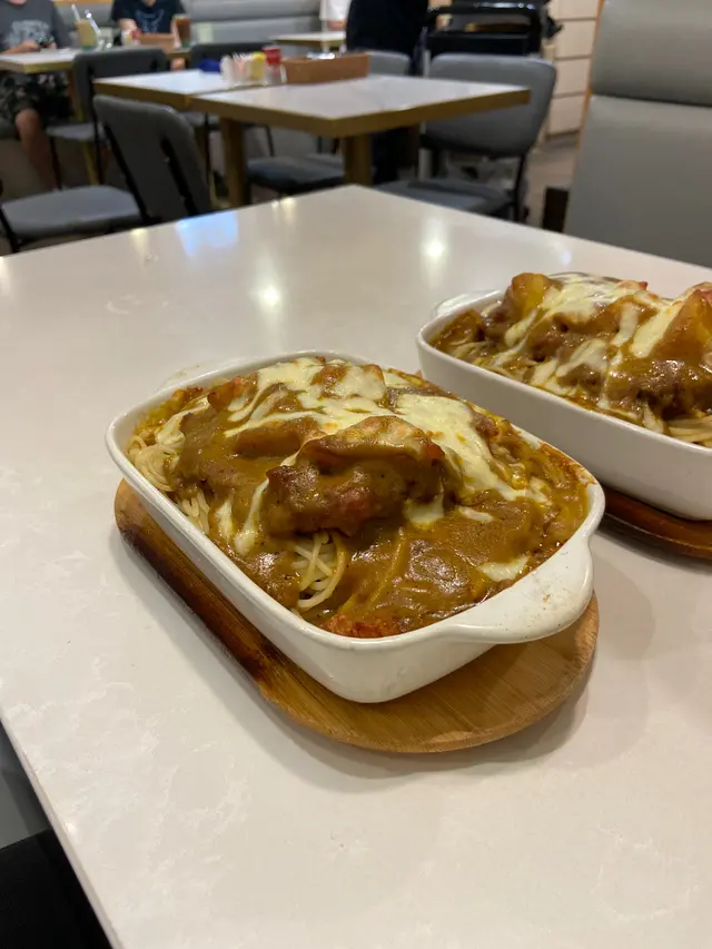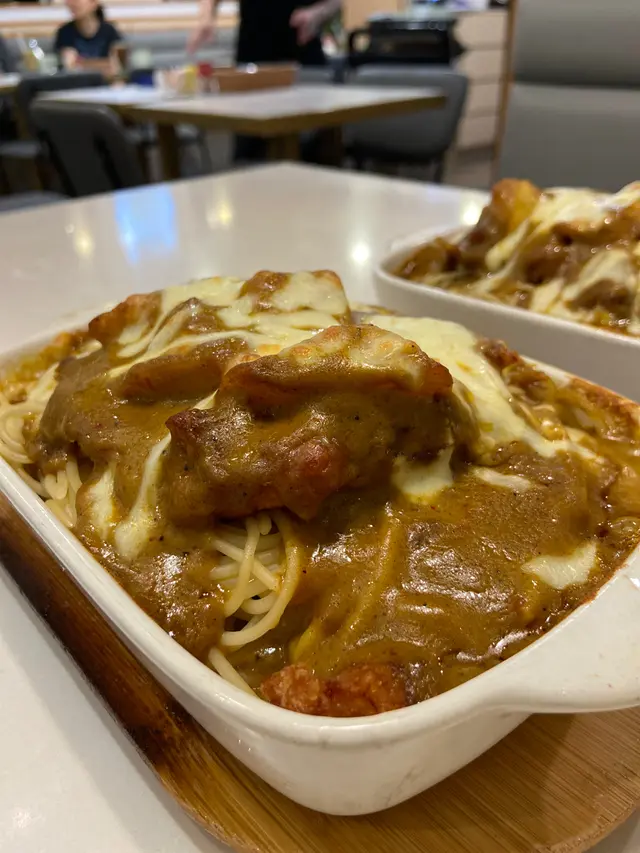 多數茶餐廳都會喺夜晚提供小炒甚至鐵板餐,不過呢間就只有碟頭飯,而且係每日精選,即係未必日日都有星洲炒米嗰啲🙈呢日咁啱有芝士咖喱豬扒焗飯($55),好耐冇食港式咖喱所以就入去試試🤓隨餐附送熱飲同是日靚湯,不過真係超級咸,唔建議大家要😂滿滿嘅芝士真係令人食慾大增,雖然未至於爆漿嗰種,但絕對比連鎖店慷慨,足夠比你過吓癮,如果焗燶啲就再正啲😋豬扒唔係用粉漿炸嗰款,應該係純粹沾少少粉就攞去油炸,所以唔會有一層淋咗嘅粉皮喺面頭,仲有脆脆嘅肥膏😝雖然唔算超厚,但食落唔覺用咗好多梳打粉,亦都唔係好乾好柴,所以都已經唔錯👍🏻意粉亦都冇太淋或者發脹曬嘅問題,份量頗多,再加埋面頭有啲薯仔粒(應該有煎過表面所以口感幾好),食完真係飽到上心口😆啲咖喱偏向日式,即係冇咁香辣同濃味,但整體嚟講都幾抵食幾唔錯😉查看更多