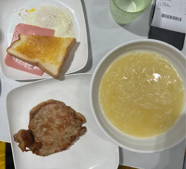 見未有咩人介紹,去食早餐順便影吓佢個早餐餐牌。食咗豬扒米,加火腿煎蛋,餐牌寫可以揀兩款,我想揀煎蛋同炒蛋,不過店員話唔可以咁樣拼,一係煎雙蛋或者炒雙蛋。咁我就揀火腿煎蛋。一時唔記得講自己要太陽蛋,好在隻蛋都唔會太熟。估唔到件多士又烘得得唔錯,係厚多士。奶茶幾好飲,夠香濃,叫咗少奶,啱我口味。原本見到佢係半透明呢種米粉幾開心,諗住好好食,可惜佢個米粉一啲都唔滑,食咗幾啖就唔係好想食。同其他舖頭嘅半透明米粉唔同質地,可能供應商唔同,呢碗米粉有啲扣分。星期六朝頭早呢間茶餐廳勁好生意,幾乎全場滿座。服務正正常常,都幾好。查看更多