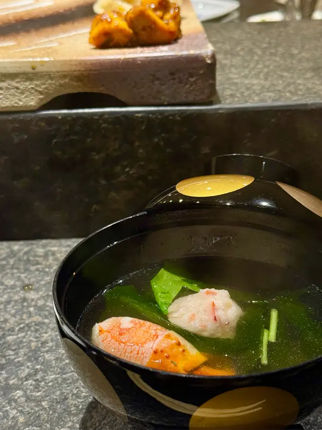 店舖名稱充滿浪漫詩意,進食過程係一場味覺加視角嘅感觀盛宴,食物製作用心,係心目中滿分嘅慶祝餐廳💯【OMAKASE SUN】💰1380🥗「先付」七色米通炸三文魚(銀杏、蓮藕片)、柚子醋啫喱炸海老、秋刀魚🐠「刺身三款」1/ 薄切深海池魚:盡顯師傅刀功,建議捲起蝦肉,配上竹碳鹽,味道清新2/ 北海道白象拔蚌:擠上檸檬汁,爽口鮮甜3/ 時令獅魚:古法燻製,味道介乎煙燻與鮮甜之間🍲「御料理」銀雪魚朴葉燒:朴葉香味包覆銀雪魚,魚肉肉質嫩滑,佐上味噌烹調🍣「壽司九貫」1/ 真鯛魚:柚子皮增加清新口感2/ 平目魚(左口魚):炙燒魚邊魚肝,油脂風味濃郁3/ 帆立貝:鮮甜且富有彈性4/ 鹿兒島間八:肉質清爽嫩滑、味道清甜5/ 北海道喜知刺:日本三大名魚之一,炙燒後帶有淡淡焦味,魚脂豐富6/ 伊佐木:白身魚,肉質緊緻、配柚子胡椒更有風味7/ 筋子:以自家味噌及鹽漬手法,既保留琥珀色澤,又顯濃郁味道8/ 和歌山大拖羅:入口即化9/ 北海道赤海膽:師傅以不計成本方式,大方疊上多層海膽‼️海膽味道鮮甜,加上淡雪鹽提升層次🥣「吸物」松葉蟹棒真丈清湯、蟹肉丸🍇「甜品」赤肉蜜瓜、巨峰提子…查看更多