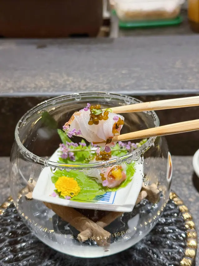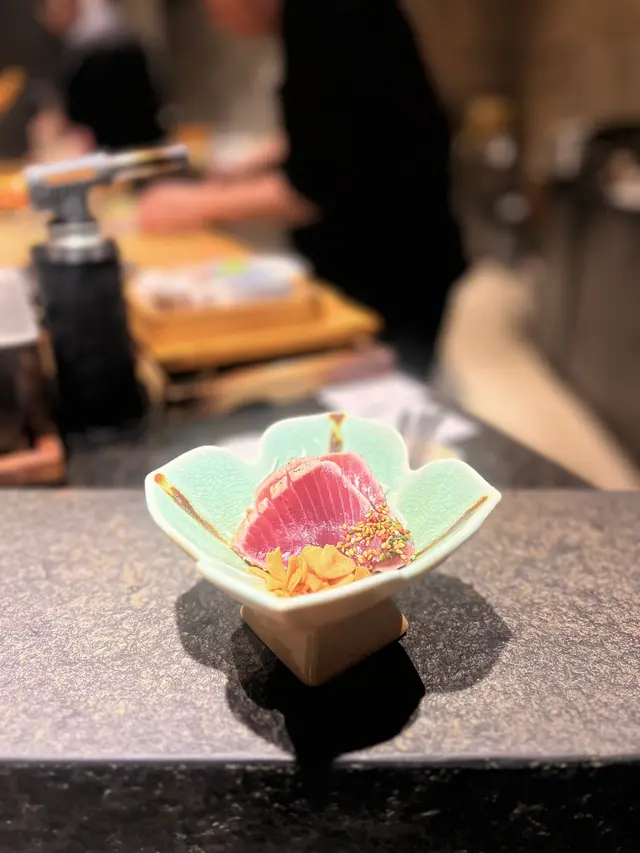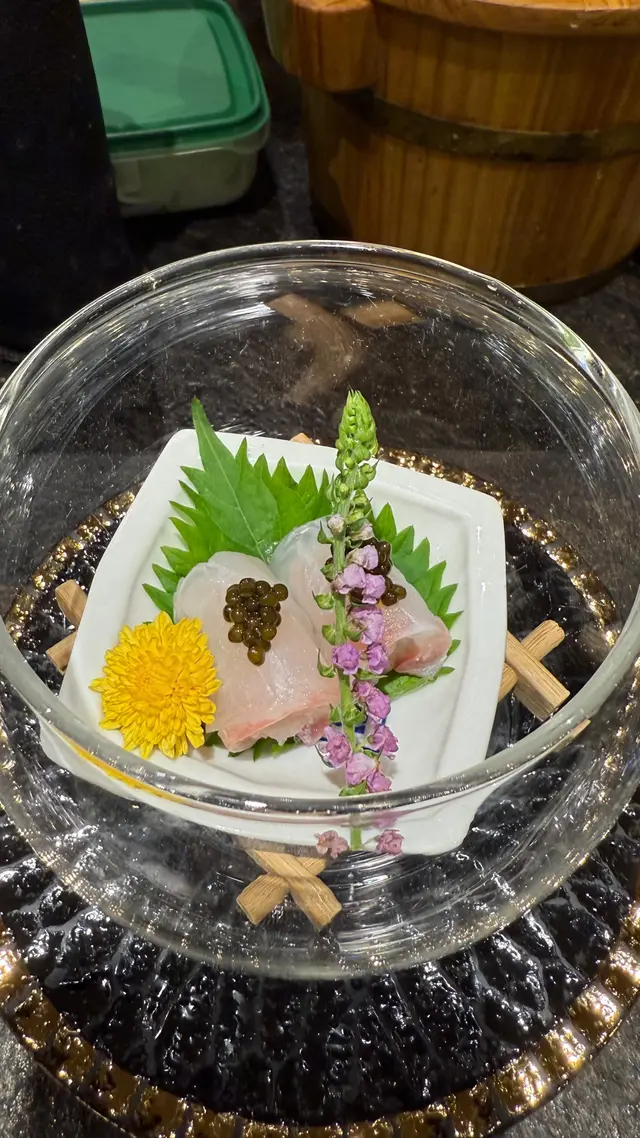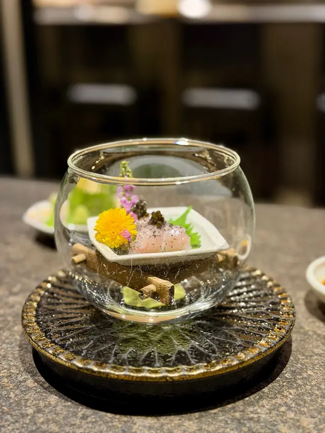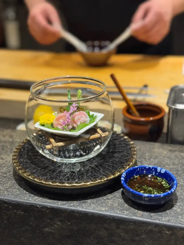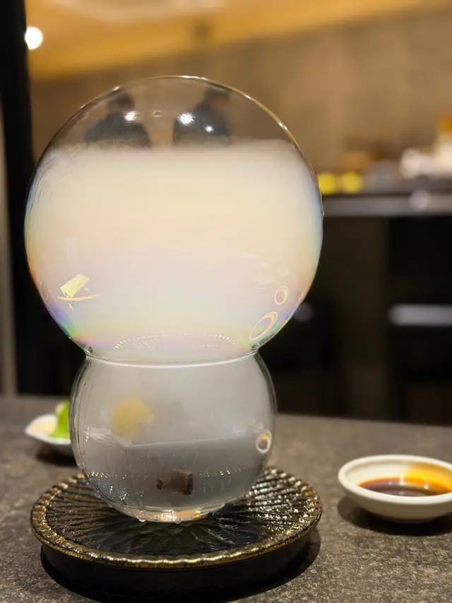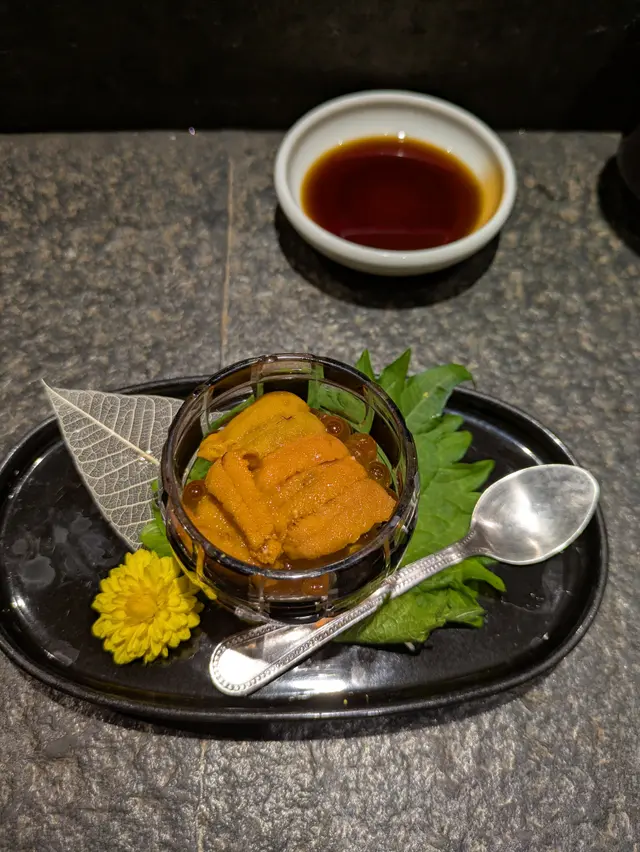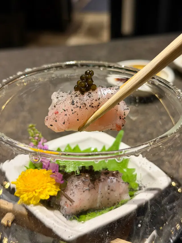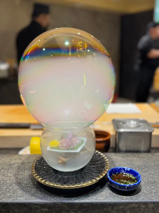 套餐內容豐儉由人,性價比高,同時擅於捕捉與滿足客人心理,將日本時令食材結合仙氣、泡泡效果等「打卡元素」。食物:🌙 Omakase Moon ($1,580)🥢 先付✨鹽焗銀杏、落花生、石川小芋、龍珠果✨水雲:清爽帶酸,有助開胃。✨香魚甘露煮:師傅以甘露煮方式烹調香魚,連骨頭亦已煮至軟化,能呑進肚子,吃起來芬芳甘鮮。🐟 刺身五款✨深海池魚:巨大氮氣泡泡的瞬間爆破,彷彿揭幕了一幅盛於瓶中的畫作。主角是入口細緻帶微甜的深海池魚,它輕柔捲起綿糯的甜蝦,綴以竹炭鹽、奢華的魚子醬及紫蘇花,海洋氣息延綿不絕。✨北海道白象拔蚌:肉質清甜鮮爽,配青檸汁。✨三文魚海子膽杯:金燦燦的模樣,叫人心動!以濃厚鮮美的北海道根室馬糞海膽,搭配餐廳自家醃制的甜美三文魚子,口感豐富。✨剛入季鱈魚白子:滋潤養顏之寶!質感細緻滑溜,燒過後更creamy,配蔥花蘿蔔同吃,有辟腥及提升鮮味之用。✨四國鰹魚:色澤鮮艷,緊實有彈性,裹上洋蔥、茗荷及炸蒜片,香而不膩。🍲 御料理✨雉羽太:即石斑魚,經酥炸後依然細緻味清,伴以青瓜、河蝦、米茄及日本甜薯,溫潤舒適。🍣 寿司十貫✨真鯛:味道清雅柔韌。✨北海道銀鱈魚:肉質幼滑,油脂豐腴,配上黑松露醬更香溢。✨靜岡縣白三文魚:油脂豐厚,好彈潤。✨鹿兒島間八:魚身韌中帶脆感,很獨特。✨鮫鰈魚:緊實爽鮮,頂上燒過的魚邊,增添油香感。✨伊佐木魚:伊佐木魚本味道素雅,以胡椒三星漬增味,延續不一樣的章節。✨北海道網走產的喜之次:輕燒逼出魚油,橙紅魚皮微焦酥香,肉身更顯細膩。✨新鮮鯖魚:非常天然濃郁。✨和歌山大拖羅:呈粉紅色,脂香軟腍又細緻。✨北海道海膽:灑上淡雪鹽,甘甜、入口即溶,令人齒頰留香。🥣 吸い物:大蜆清湯🍮 甜品 (デザート):提子、赤蜜瓜…查看更多