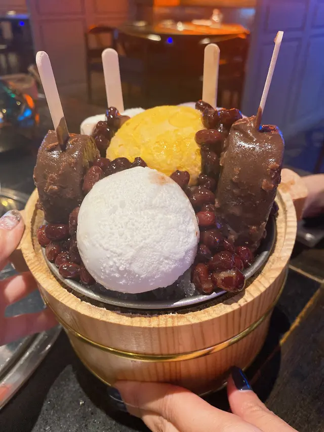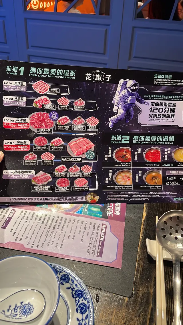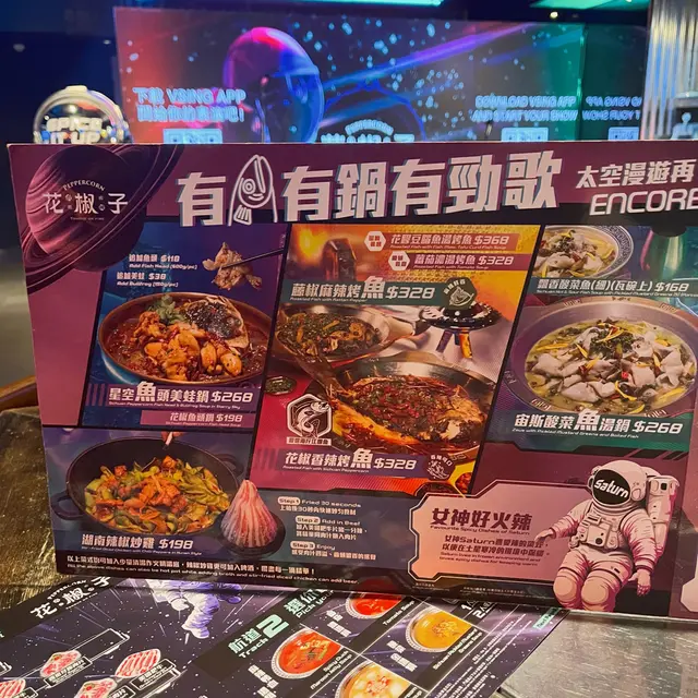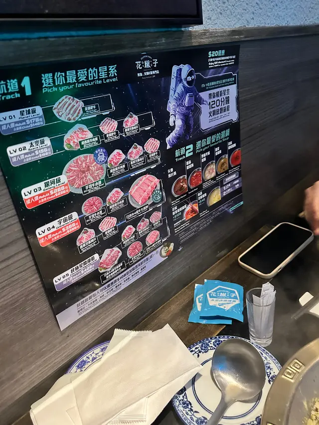 太空主題,基本從入門口到坐低,到處都系打卡位👍🏻可能因為去得晚,我哋話想打卡仲安排咗離後面拍照方便嘅台。11點閂門,10點截單,我哋9點50幾去到仲系接待埋我哋,實喺太感謝啦😚其實我系為咗冰桶去嘅🤪畢竟有邊個女孩子可以拒絕哦╮(╯▽╰)╭不過落單嘅時候可能菜單上冇,問咗佢哋話可以手動落單,實喺太開心啦!!!並且喺上菜和用餐嘅過程中,並冇因為我哋時間夜(最後一桌)或者會耽誤佢哋遲收工嘅原因,導致服務變差之類,每次上菜態度都好好,冇唔耐煩之類,對於好奇嘅地方都會耐心作答。唔知道系唔系按照甜品後上,我哋都驚佢哋唔記得或者食要時間,也系催咗一下。(畢竟耽誤人哋收工都會唔好意思嘅🤪)哩度嘅乾鍋真係要表揚下🥸畢竟天氣凍,下面會有個蠟燭一直加熱,所以全程落嚟都系暖既d菜,感覺呢d小細節用心咗😋四季豆就份量足,沒咩好講,重點心心念念想食嘅冰桶嚟咗!!!實在喺太足料,感覺唔使另外點嘢飲,直接一個冰桶幾個人分就夠晒,而且上面嘅雪條有唔同嘅味道,下面除咗冰之外,仲有涼粉,加上上面嘅冰和紅豆真嘅太鍾意啦!如果唔系時間唔夠,我一人乾一桶😝餐單仲有火鑊之類,不過呢d要時間嘅只能等時間充裕再去╮(╯▽╰)╭呢間都系會令我再去嘅店,我哋都系踩點10點50幾分離開,不過呢段時間冇人過嚟催我哋,體驗感好開心🥰計埋+1人均先100多一點,地址喺旺角雅蘭中心,不過門口要嚟到旁邊,都算方便,天冷咗,辣辣嘅嘢走起٩(˃̶͈̀௰˂̶͈́)و…查看更多