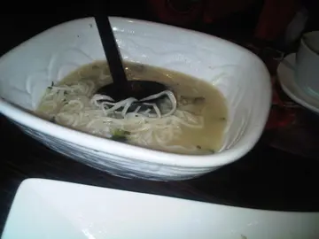 Shredded Pork and preserved salted veg with ramen in soupThe noodles and pork was acceptable, but the broth had to go to waste. It was so salty, either by over-seasoning of the cooks (I'm not sure proper chefs would send food out without quality control) or by a misstep in not washing the preserved vegetable properly to get the saltiness out. Anyway, none of the soup could be consumed, which defeats the purpose of ordering noodles in soup.