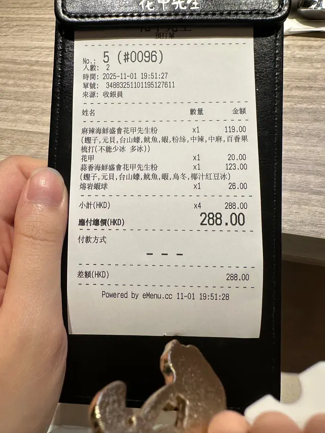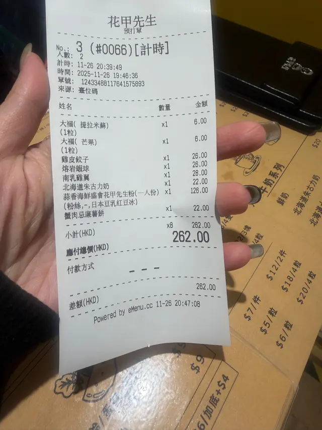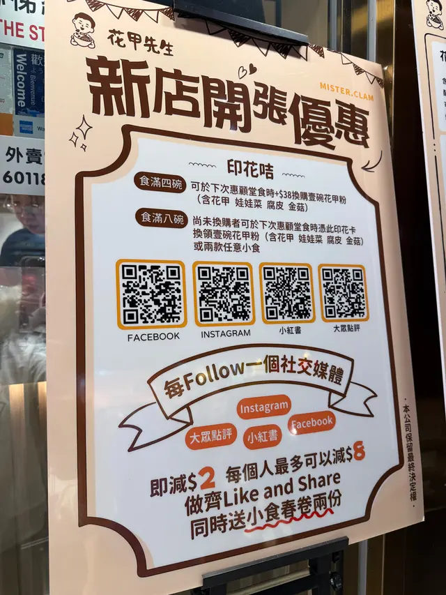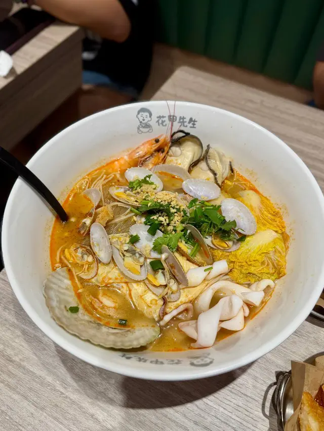 呢幾日見社交平台元朗谷好多人介紹花甲先生,心血來潮就去搵下佢,晏晝兩點來到排晒隊,目測等十張枱😂果斷放棄😂五點幾再來過,情況好好多等兩張就有得入座。店舖唔大,大概三十個位左右。餐牌除左花甲粉,仲有幾款辣味飯同數款小食,算係唔少選擇。先掃碼落單,介面有啲難用😅原來係先揀湯底再揀配撘,不過店員都好主動幫手落單嘅。⭐蒜香海鮮盛會花甲粉家人點了花甲先生的招牌粉海鮮盛會,是日海鮮有元貝、台山蠔、魷魚、蝦同蟶子,聽店員講話某啲食材如果無貨就會轉。湯底要左蒜香口味,再配了公仔麵。又真係幾鮮甜,份量對得住價錢,唔錯唔錯😋⭐麻辣先生粉自己就揀左麻辣湯底,要左小麻小辣,實際上都幾辣㗎,唔小囉,哈哈😝餸就點左牛丸、午餐肉、蘿蔔再加花甲,再叫左多芫荽。賣相吸引🤤雖然辣左啲但都幾啱口味,烏冬好滑,花甲鮮味,正。⭐南乳雞翼 & ⭐雞皮餃子見枱枱客都加生炸雞翼,我地又叫返份先,唉唉……賣晒啦🥲改叫南乳雞翼,都正喎,又香又脆仲帶南乳香。除左雞翼,仲加左雞皮餃子,雞油甘香又脆口,正🤤⭐日本豆乳紅豆冰 & ⭐凍利賓納飲品方面好多得揀,家人揀左紅豆冰😆呢杯紅豆冰有特別㗎,用上日本豆乳,再揀左少甜,嘩嘩,又真係幾好飲,紅豆好綿豆乳香甜,正。自己點左凍利賓納,解辣一流👍係幾好味,谷友無介紹錯😝…查看更多