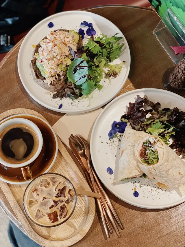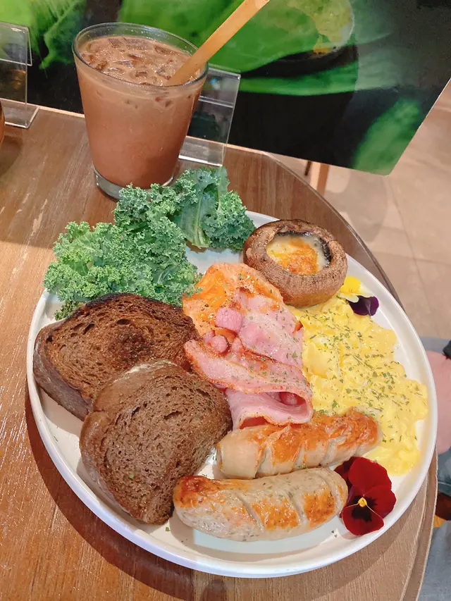 柳暗花明又一村,說的就是這家咖啡店吧。隱藏在花店深處的咖啡廳,走進去就被花花草草包圍,原木色的桌椅,盆栽,花束綠植,花藝書籍和種植器皿,以及甜品和花葉混雜的清香,安靜愜意,來坐一坐什麼都不吃,也是定神養陰的一個午後呢。1 定製版BelgianWaffles :原版是窩夫+配香蕉燕麥,肉桂蘋果和Vanilla冰淇淋。因為冰激淋sold out, 店員在禮貌徵求我同意的前提下,很隨性、創意地為我們design了一個混合口味,又加了雜莓和乳酪,叫一份能品嘗了兩種wafflestoppings的味道!出品的顏值和味道都線上,我本來不愛吃很齁的甜品,這份甜品散發著很天然的蜂蜜甜味,完全不甜膩,和浪漫的環境、咖啡的微苦分外搭配,推薦嘗試~2 巴斯克焦香乳酪蛋糕:口感綿密,甜度正好,芝士的香醇點綴微微焦香的表皮,是為巴斯克給的加倍快樂。 3 咖啡:點了冰拿鐵,奶香濃郁,豆子應該是blend的,不酸也不苦,非常順滑平衡。他們的拉花水準據說很棒,有興趣可以試試熱咖啡,拍照會很美。這是一個可以讓人忽然慢下來、安靜下來的小地方。適合發呆,看書,小聲交談,點一杯飲品,拈花惹草,品味工作以外,生活隨手可得的美感與悠閒。吃完這餐飯,走出店鋪,仿佛經歷了度假一般。櫥窗外,街道上,中環車水馬龍,路人西裝革履行色匆匆。仿佛提前偷走了幸福兩小時。查看更多