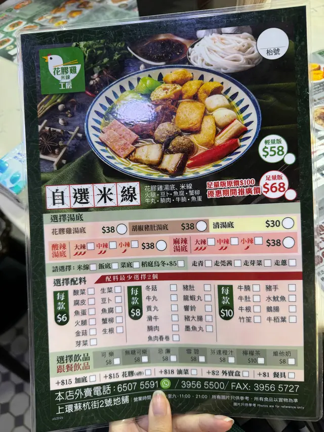 花膠雞米線工房 (上環) 網址: https://s.openrice.com/QrbS0DsmC00 地址: 香港上環蘇杭街2號地舖 電話: +852 39565500