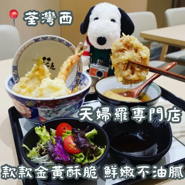 最近住荃灣嘅朋友同我講 荃新天地二期地下多咗條日本風格美食街叫「一門町市場」🇯🇵 一門町係2023年12月16日正式開幕🍜🥟🥢路過見到至少十幾間娛樂商店及不同風味的餐飲美食及用餐體驗👍🏼今次見到一間環境光猛、木系裝修的天婦羅專門店😍值得一讚係每款天婦羅外層炸得金黃酥脆而不油膩 另外佢內餡唔會炸到抽乾晒水份乾爭爭 仲保持到鮮嫩口感👍🏼👍🏼 ⋱⋰ ⋱⋰ ⋱⋰ ⋱⋰ ⋱⋰ ⋱⋰ ⋱⋰ ⋱⋰ ⋱⋰ ⋱⋰ ⋱⋰▪️ 精選海鮮丼$98虎蝦、鱚魚、墨魚、粟米芯、蓮藕及流心蛋賣相吸引超豐富 款款外層酥脆香口 虎蝦夠大隻 肉質彈牙鮮甜😍唔係雪藏到淡而無味!蓮藕、粟米芯清甜有爽脆咬感😋流心蛋令丼飯加吸引🤩👍🏼▪️ 天婦羅蕎麥麵(熱)$128虎蝦 2隻、蟹柳、鱚魚、秋葵、粟米芯天婦羅選項同海鮮丼差不多 多咗蟹柳同秋葵蟹柳超巨型 味道鮮甜😋蕎麥麵🍜彈牙 湯底清清地食完唔會口渴👌🏼▪️ 野菜五品$36南瓜、番薯、茄子、粟米芯、秋葵茄子🍆有多汁的口感南瓜🎃、蕃薯🍠帶淡淡甜味👍🏼👍🏼整體價錢唔貴 款式配搭多而賣相又吸引值得一讚店員服務態度好好🫶🏻仲介紹咗野菜同海鮮天婦羅🍤蘸上天丼汁及辣汁的食法❤️ ⋱⋰ ⋱⋰ ⋱⋰ ⋱⋰ ⋱⋰ ⋱⋰ ⋱⋰ ⋱⋰ ⋱⋰ ⋱⋰ ⋱⋰查看更多