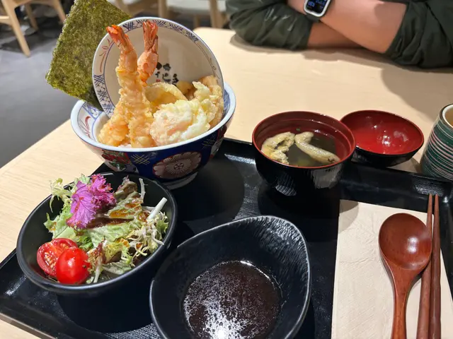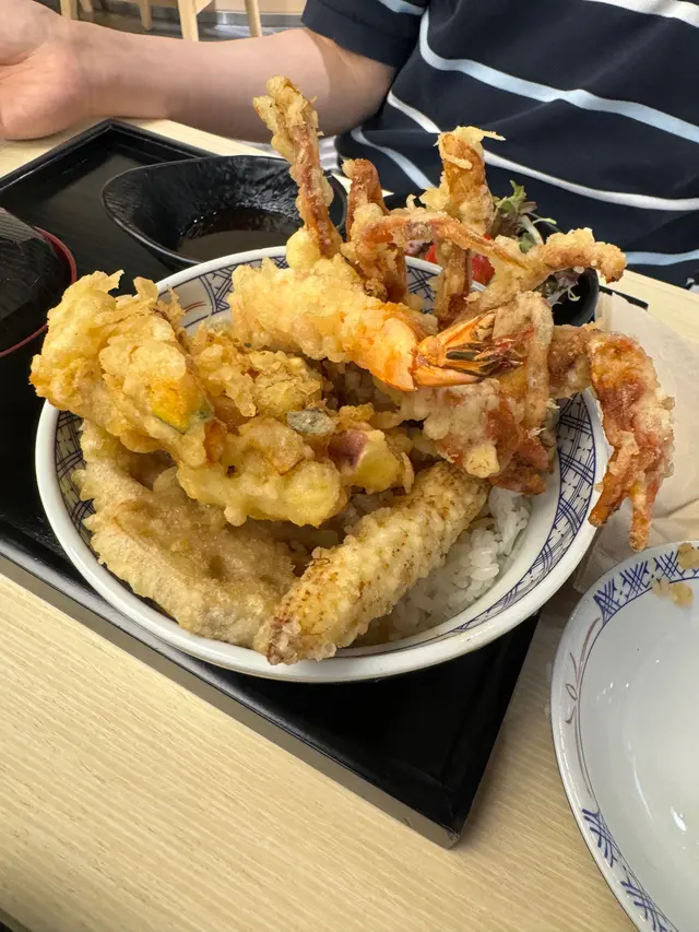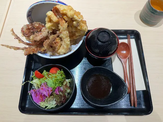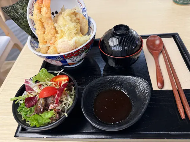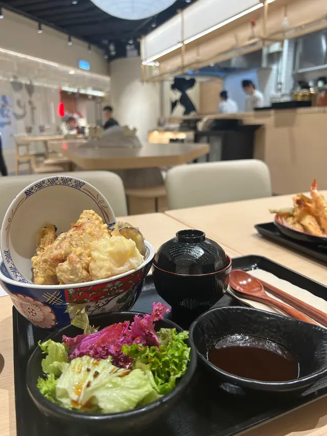 餐廳事業期間入去食第二碗即享半價 餐廳環境優美,木系裝修感覺舒服舒適 非常乾淨 衛生入座時 員工會遞上茶係玫瑰花茶 好好飲! 叫左碗軟殼蟹小柱丼飯,同埋海老天丼☺️食物即叫即炸,可能需時,但係值得等!2碗都非常好食 😋 一啲都唔油膩!高CP值!跟餐有埋沙律同湯同埋一碟豉油啲炸物都好大件 飯就乾左小小 但粒粒分明 如果濕d會好食碗湯係鰹魚昆布湯 一啲都唔鹹,好鮮甜!好好飲呀!員工服務非常好,面帶笑容主動斟茶!希望keep到!查看更多