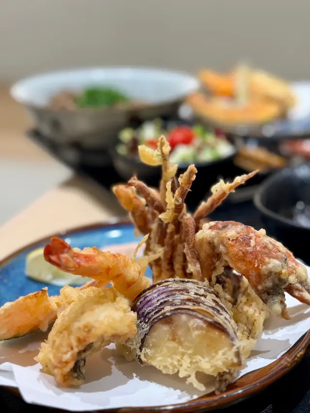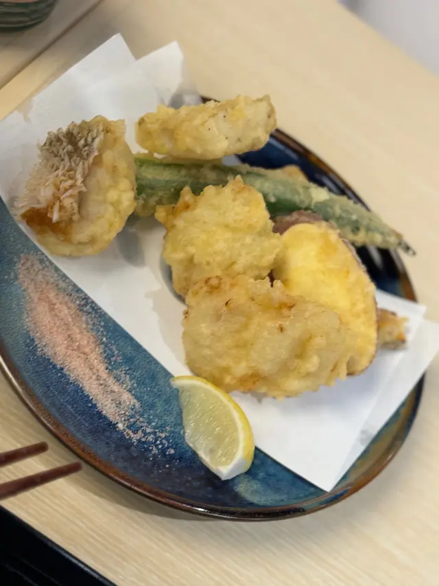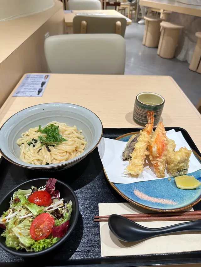 今日在荃灣覓食,行經荃新天地2期,見到有間日本天婦羅專門店,一向喜歡食香口食物嘅我,當然唔會錯過試菜嘅機會。呢間天婦羅專門店的裝修用日式木系風格為主,店鋪中心天花懸掛著日式的紙燈籠,頗有日式料理餐廳的感覺,而且店鋪空間感十足,絕對不會有擠迫的感覺。今次點了稻庭烏冬跟天婦羅拼盤午餐👇🏻♦️ 蔬菜沙律前菜口感清新、爽口,酸甜咸鮮各種味道交織在一起,既健康又美味。♦️ 虎蝦天婦羅炸衣薄身,口感偏向軟身,外殼酥而透明,內裡鮮嫩多汁。♦️ 蟹柳天婦羅蟹柳的口感就十分出色,其質地細膩,口感鮮美,帶有一種淡淡的鮮甜味。把蟹柳製成天婦羅後,其口感得到了進一步的提升。♦️ 鮚魚仔天婦羅鮚魚仔的肉質鮮嫩,經過油炸後,魚肉不僅保持了其原有的鮮嫩口感,還增添了一種香酥的味道。♦️ 冬菰、茄子和粟米天婦羅既有炸物的香脆,又有蔬菜的鲜嫩,點少許鹽巴來吃,令蔬菜天婦羅的味道更加提升。♦️ 柚子微辛拌手打烏冬柚子的酸甜味道與烏冬的醇厚口感相互交融,既中和了麵條的油膩感,又為其增添了一抹獨特的果香。查看更多