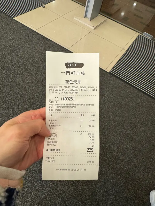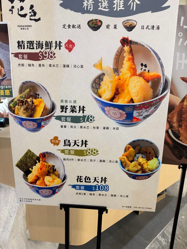 香港人一向好鐘意食日本菜🇯🇵,今次我地就去咗荃灣荃新天地二期嘅一門町市場🏪,一入到呢個市場感覺好日本風⛩️,有十多間餐飲及娛樂商店,係籌備咗兩年嘅美食街並於2023年底開幕,於是我地就係入面揀咗食天婦羅🍤專門店—花色天丼,餐廳主要以簡潔嘅日式木系裝修為主😍,白色為主調配上柔和嘅燈光令人感到十分整潔舒適☺️,仔細睇仲有紙燈掛住係店中心,座位之間都相當寬敞,坐得舒服👍🏻-花色天丼🍤 (虎蝦2隻, 鱚魚, 栗米芯, 蓮藕, 流心蛋) - HKD 108見到花色天丼🍤係用店鋪名嚟命名,應該係主打丼飯之一,於是就叫咗一碗😆,點餐時以為只係得丼飯,但上菜後發現原來有齊湯及沙律,相當有誠😄,首先試嘅緊係兩條大大條嘅虎蝦先😋,食落肉質好彈牙,而且外層炸粉唔厚👍🏻,酥脆得嚟又唔會有油膩嘅口感,栗米芯🌽同蓮藕炸完都仲係好清甜爽口,正🤤,最得意係佢嘅流心蛋天婦羅🥚,之前都從未試過依個新奇組合,一啖食落口先有天婦羅嘅酥脆口感,之後就係流心蛋係口腔爆開嘅味道,相當過癮😆,而且蛋汁撈埋日本珍珠米🍚更香口,令人唔經唔覺就好快食哂啲飯,抵讚😙-鳥天丼🐤 (雞肉4件, 栗米芯, 茄子, 蓮藕, 流心蛋) - HKD 108之後就叫咗個雞肉丼🐤試下,一上菜就見到4舊雞肉,份量十足好吸引😋,食落口新鮮熱辣辣,口感爽脆, 而且炸粉唔厚,食完都唔會令人有好重嘅油膩感係口腔,而且雞肉大件得嚟又好嫩滑,味道比起其他炸雞專門店更有水準呀🙈,茄子食落口都幾有水份,好清新🤪,唔會炸得太乾,而流心蛋配雞肉飯更有畫龍點晴嘅感覺,令人愈食愈滿足呀🥰-南瓜🎃(2件) - HKD 15嚟得天婦羅專門店都仲想食多少少天婦羅😆,就叫多左份南瓜🎃食下~ 食落口感爽脆,味道清甜,天婦羅表面乾身得嚟又唔會油膩,有水準👍🏻-係香港一向都係拉麵店🍜同壽司店🍣居多,比較難搵到天婦羅🍤嘅專門店,今次依間花色天丼嘅天婦羅🍤整體都好出色😋,賣相精緻得嚟食材又幾新鮮,而且食物份量多,重點係價錢唔會太貴,CP值相當高~店員都幾有禮貌,會主動斟茶及簡單講解下丼飯嘅食材👍🏻,店鋪佈置又幾用心,如果大家口痕想食下天婦羅就唔好錯過依間餐廳啦😍查看更多
