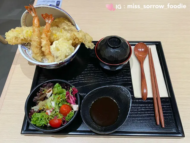 呢間餐廳由擁有多年天婦羅Omakase 經驗嘅師父主理,主打即叫即炸嘅天婦羅定食🍱💗 穴子海鮮丼定食 ($148)天婦羅炸粉夠薄,酥脆唔油膩。一整條穴子魚橫放在丼飯上,非常吸睛!除咗有2隻爽口虎蝦外🦐仲有爽脆嘅蓮藕同粟米芯🌽拮穿天婦羅流心蛋,將蛋汁撈埋入飯一齊食更香滑🥚一定要蘸上帶陣陣柚子香秘製天婦羅汁🍊💗 天婦羅冷蕎麥麵($138)海鮮方面有2隻虎蝦外🦐,仲有嫩滑嘅鱚魚同鮮甜嘅蟹柳🦀蔬菜類方面就有秋葵同粟米芯,非常爽甜,蘸少少鹽巴更加提味。冷蕎麥麵煙韌,係蕎麥麵湯汁加少少Wasabi 、蔥同芝麻撈埋一齊食,清爽解膩🧊查看更多