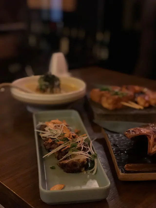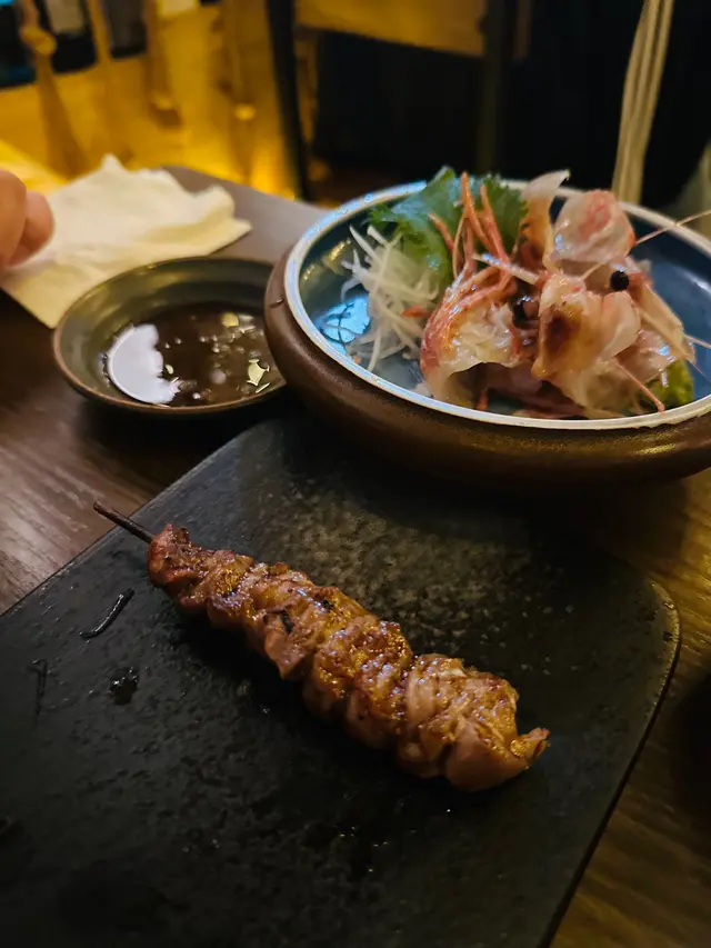 玩一款網上遊戲7年,最近兩年開始注意到一位女生,起初是被她敢作敢言的性格吸引,後來才知道她與我是同月同日生日的,於是就「賴」她一下,看看她會否同意出來見面,然後就愉快的約會去了。這天是我們的第二次約會,地點就選了在隱於銅鑼灣鬧市之中的人氣日式居酒屋-花街道酒処Hanakaido。店舖木系裝潢極具日式風情,與日本居酒屋無異。餐牌上有多款小食、沙律、串燒,並有超過20種清酒及日本啤酒選擇餐牌以外,還有每日廚師推介美食熱情的店長還會為我們細心介紹,挑選合適我們口味喜好的食物店內氣氛濃厚,環境舒適,非常適合聚會在點餐之前,我們興致勃勃地去挑選清酒店長按我們要求,為我們推薦了花香怡人,米香豐盈,口感清爽的加茂錦 荷札酒 黃水仙 純米大吟釀。鱈魚乾微烤後散發淡淡的鹹香,正好用來送酒。淮山漬脆嫩清爽,作為佐酒小食,提味不膩。 刺身拼盤時令魚生切片厚,入口鮮甜味美。 仙極蠔肥美新鮮,滑溜多汁,鮮味滿分。 串燒一律即叫即燒,炭香四溢,每串火喉均勻。(從左至右)豆腐:經炭火慢烤,外層微脆、內裡保持豆香軟滑。豬大腸:炭燒外脆內嫩,毫無異味,重口味之選。 牛舌:切得厚薄剛好,彈牙多汁,是燒肉控必食。 紫蘇豚肉卷:薄切豚肉包裹紫蘇葉,香氣突出,層次分明。雞尾與雞皮:外脆內嫩,油香不膩,是店內人氣選擇。雞免治肉串:細緻軟嫩,蘸蛋黃提升風味極佳。大根天婦羅:蘿蔔吸滿高湯,外層微脆,口感奇妙。 紫蘇梅酱沙追魚天婦羅:外酥內嫩,沙追魚肉質彈牙,配紫蘇梅醬酸甜開胃。美酒佳餚,共享這夜完美的時光。…查看更多