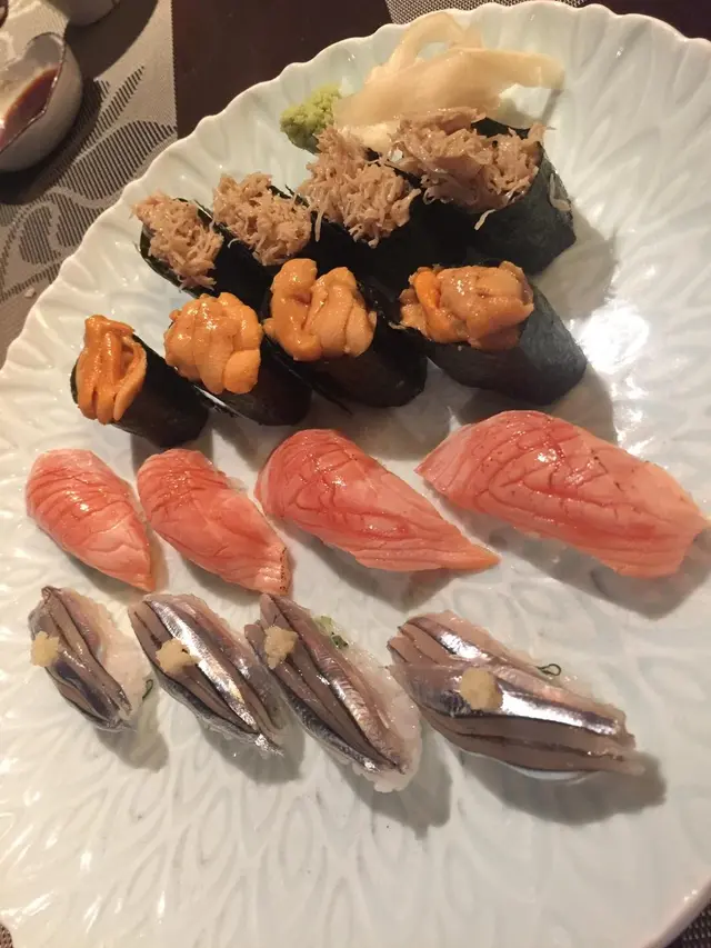 收藏了很久的餐廳,終於來一試。訂座9:30,到場時只剩一枱。環境挺寧靜的,只是裝飾陳設很復古,有點舊舊的能覺。四人來吃,點了個玉子。正常甜度。旁邊的蘿蔔蓉好吃點了兩個十二貫,餐牌上都列出了9款必有的壽司,因此不用太擔心到菜時口味不對。至於另外三款則由廚師發版,由於點了兩客,因此有6款是未知口味。上菜時,侍應會介紹3款未知口味的名稱。由於名字都很陌生,很長,就只記得常有的深海池魚一款都挺好吃的,不過只嫌吞拿魚腩還不夠肥炸雞皮,挺特別的,味道也可以,就是貴了點。牛舌也不錯,不會腥/蘇。咀嚼感可以。吞拿魚蓉卷物,中規中矩的。點了個牛肉烏冬,可選巑岐或稻庭。可向店員查詢不同之處再選哦是次我們選了巑岐,覺得略為普通。再點了個蕎麥冷麵,也是普普通通的。總結:有點期望太大。其實是不錯的,只是說不上很好很好吃,就是應該要有的水準。而且不算便宜哦。查看更多