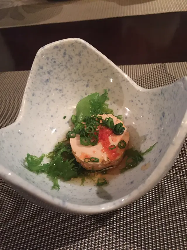 頭盤有他們推介的鮟鱇魚肝,用清酒煮配蘿蔔蓉,呢種要冬天先有先夠肥,同埋已經唔多日式料理餐廳有,挺不錯曹以薄切配黑松露酸汁及日本香蔥圍邊,的確新鮮,而且侍應更特意提我地食少少海草清一清味蕾,都幾細心跟住當然有刺身喇,牡丹蝦,帶子,赤貝,三文魚及鮪魚腩,鰆(鮫魚)配紫蘇炸蒜香蔥全部都好新鮮爽口,又唔會太凍還點了少許燒物,如燒雞肝燒雞翼,燒金針菜,燒冬菇和燒三文魚頭及鮫雞翼燒得好有水準,皮脆卜卜又大隻另外仲有壽司,海膽,炙三文魚,蟹肉蟹膏同吉備奈子D海膽好鮮好多,吉備奈子幾特別,平時較少嘗試蟹肉蟹膏都好有質感最後就係汁煮油甘魚頭及鮫,配珍珠飯,D汁好正,魚又滑又鮮PS:以此食物質素,Lunch set既價錢都值得一試查看更多
