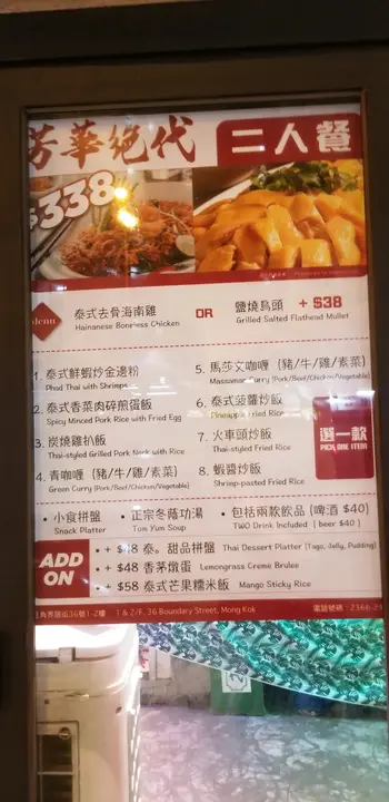 之前試過晚市,今次試下午茶太耐冇食呢間,我都唔太記得,因為下午茶冇咩選擇,大部分係甜品,10個有6個都話冇做,價錢都偏貴,所以只好叫返午餐菠蘿炒飯🍍$65跟Apple juice 🧃 啲菠蘿好少…提子乾就多,不過佢係有雞肉嘅,但係好似蒸滑雞飯啲雞咁🙈冇咩味道。未算好正宗,肉鬆條少少,腰果都係冇嘅,味道還好另配$18 蝦餅兩件,下次千萬提自己不要點,佢完全唔係用蝦整,係麵粉做嘅😰不試也罷另一個叫左火車頭豬頸肉炒飯$58+凍泰式奶茶$12個炒飯同平時食開嘅泰國餐廳有出入,冇泰式炒飯嘅惹味,洋蔥🧅全部未熟,非常之嗆味,而芥蘭粒亦帶苦味,成碟野唔係好夾再有加一服務費,下次都未必再食晚市餐牌比較多選擇 朋友聚會食過兩次 不過不失啦…Read More
