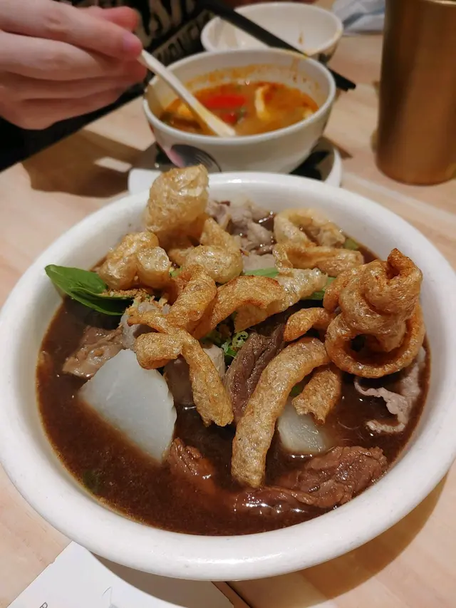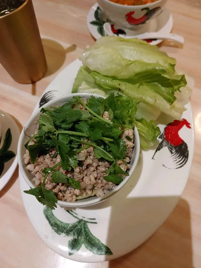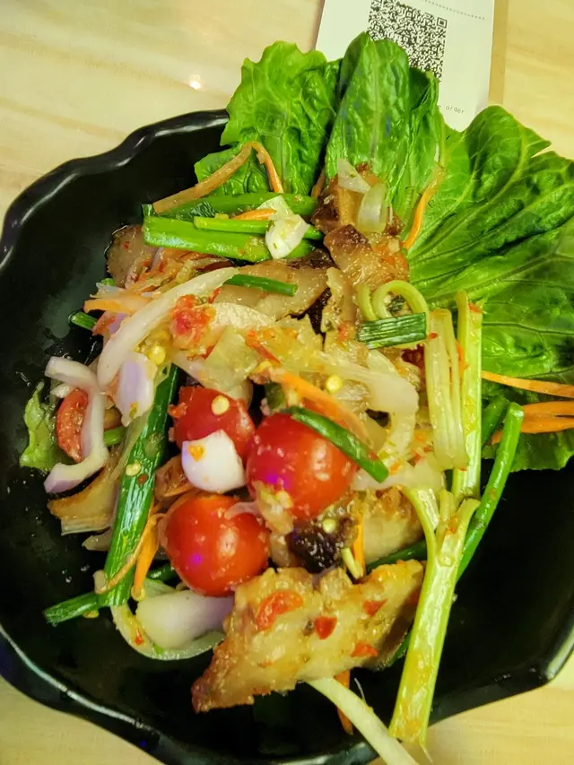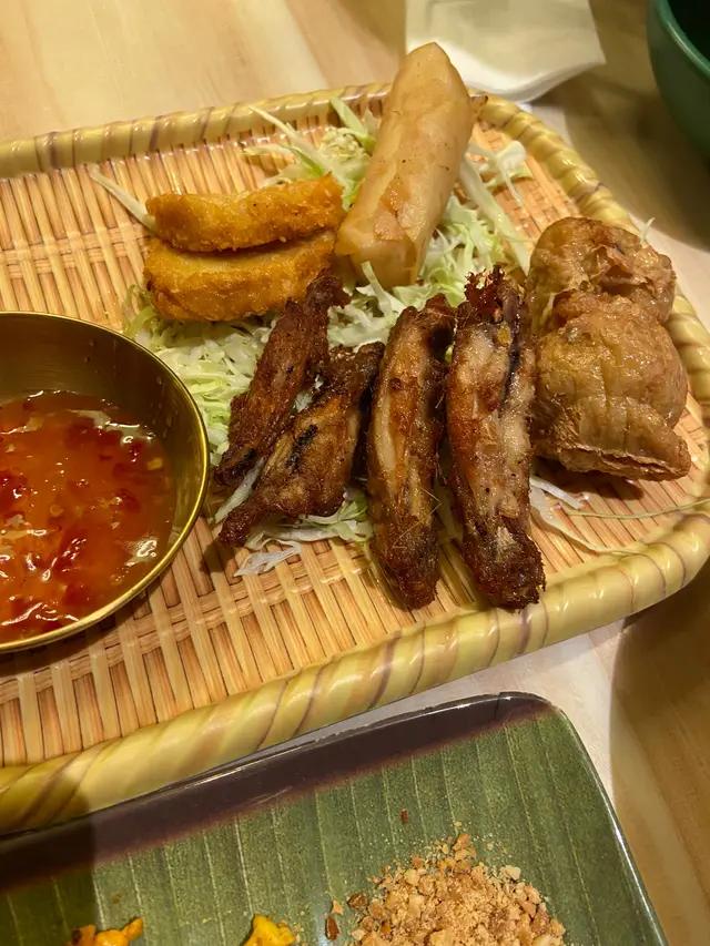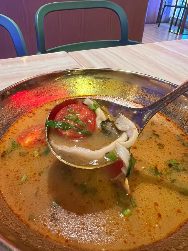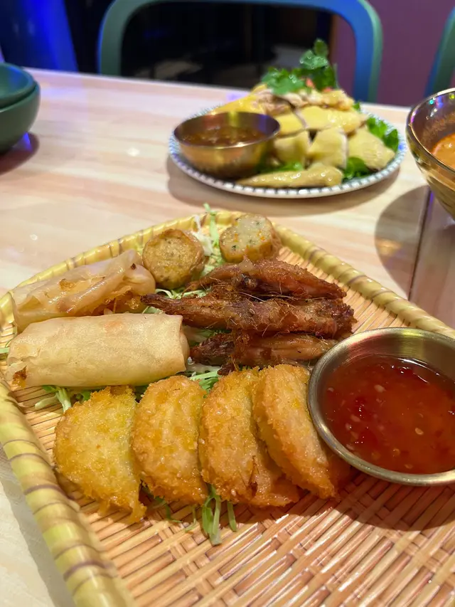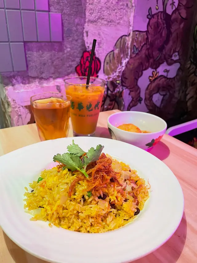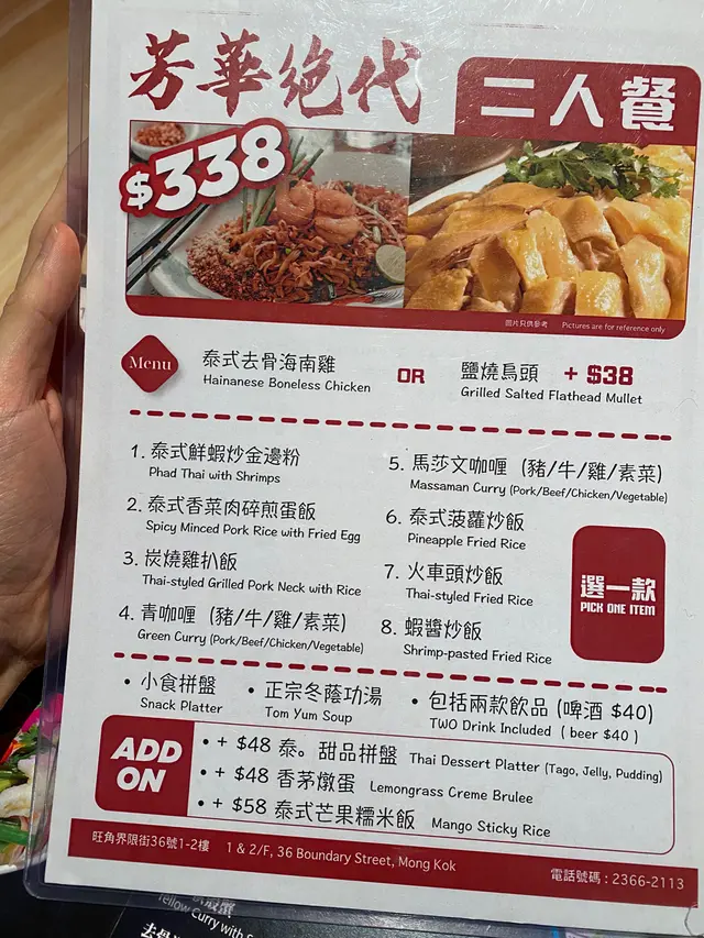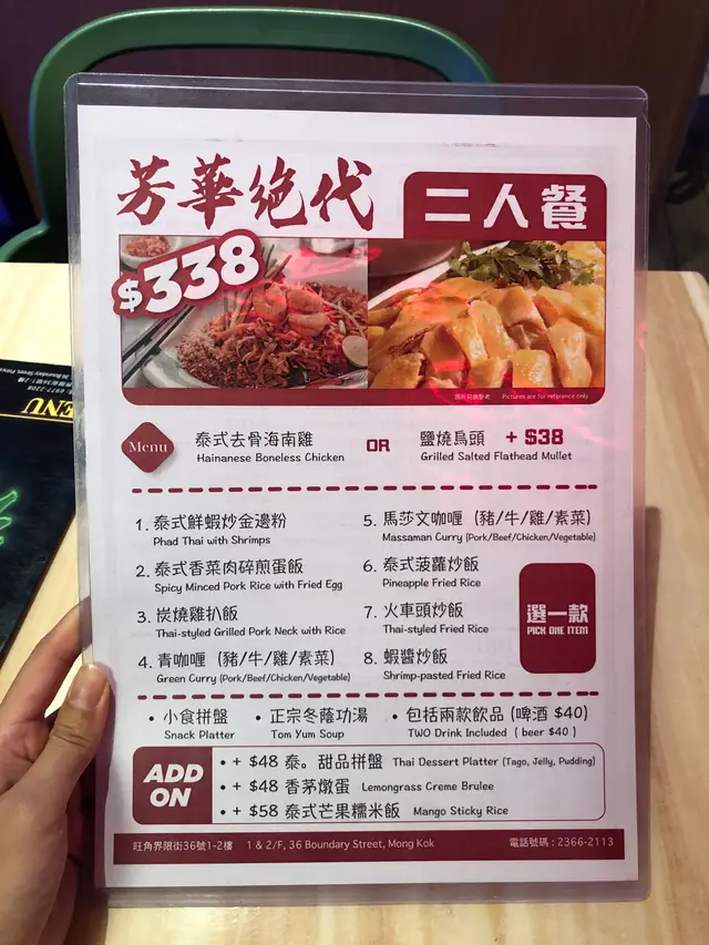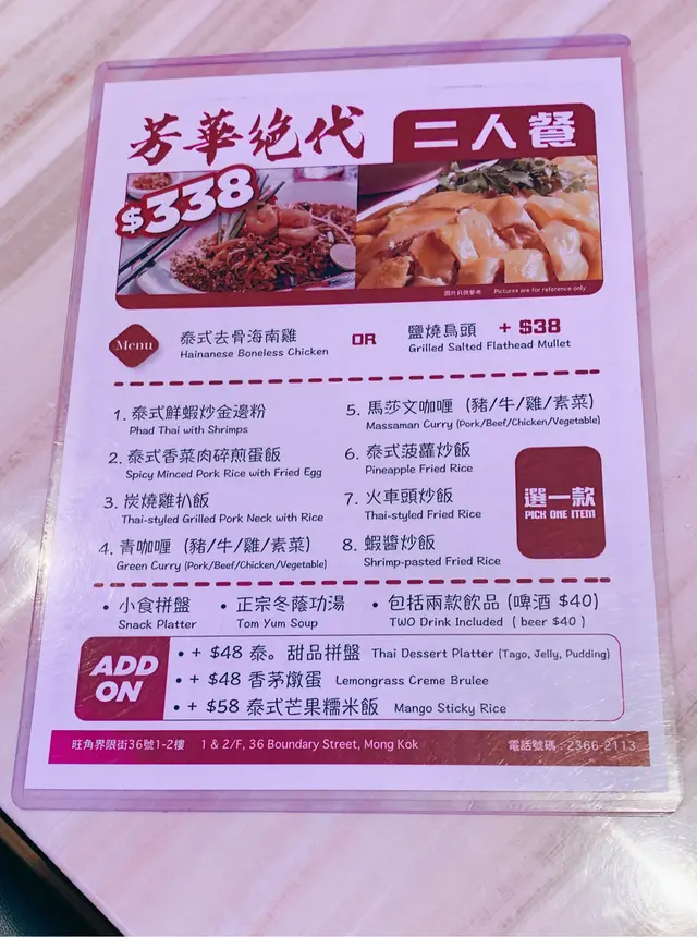 之前試過晚市,今次試下午茶太耐冇食呢間,我都唔太記得,因為下午茶冇咩選擇,大部分係甜品,10個有6個都話冇做,價錢都偏貴,所以只好叫返午餐菠蘿炒飯🍍$65跟Apple juice 🧃 啲菠蘿好少…提子乾就多,不過佢係有雞肉嘅,但係好似蒸滑雞飯啲雞咁🙈冇咩味道。未算好正宗,肉鬆條少少,腰果都係冇嘅,味道還好另配$18 蝦餅兩件,下次千萬提自己不要點,佢完全唔係用蝦整,係麵粉做嘅😰不試也罷另一個叫左火車頭豬頸肉炒飯$58+凍泰式奶茶$12個炒飯同平時食開嘅泰國餐廳有出入,冇泰式炒飯嘅惹味,洋蔥🧅全部未熟,非常之嗆味,而芥蘭粒亦帶苦味,成碟野唔係好夾再有加一服務費,下次都未必再食晚市餐牌比較多選擇 朋友聚會食過兩次 不過不失啦…查看更多